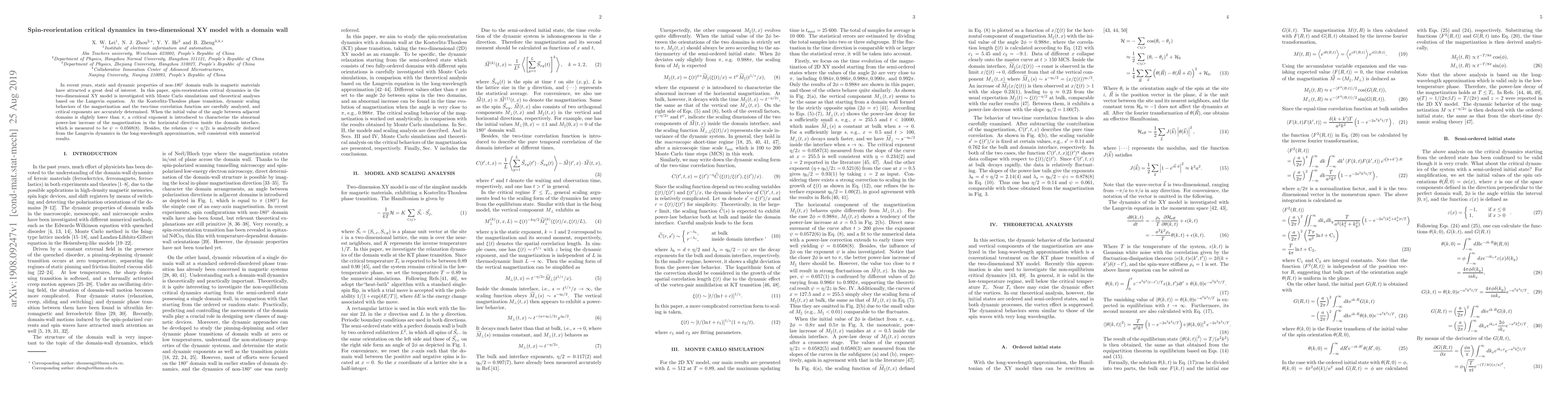 Researchers investigate spin-reorientation critical dynamics in a 2D magnetic model with a domain wall, revealing new insights into the behavior of magnetization at the transition point.