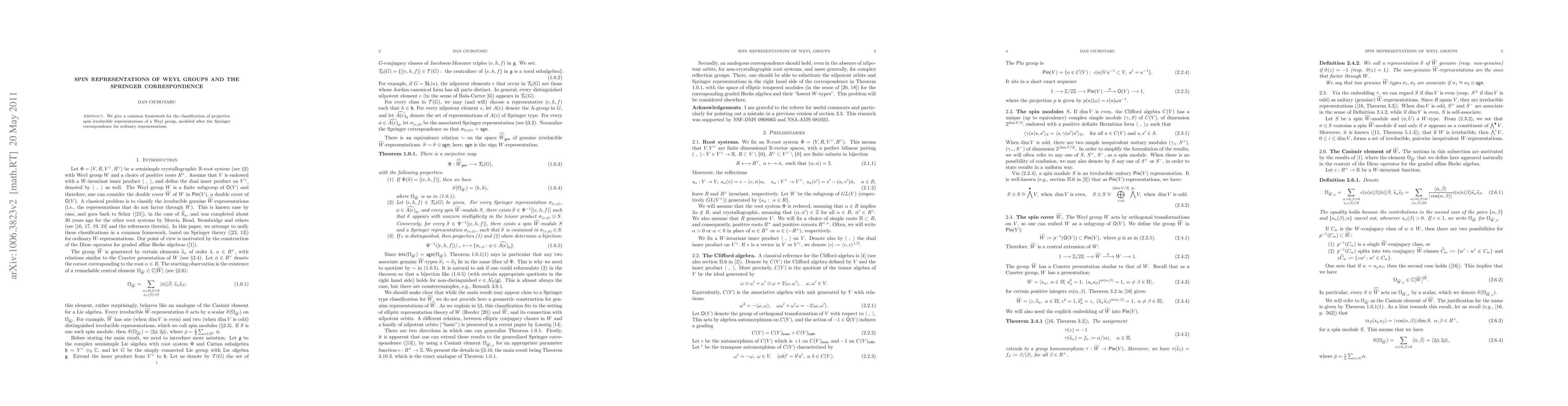 Researchers develop a framework for classifying projective spin irreducible representations of Weyl groups using the Springer correspondence, providing a common approach for understanding these complex group representations.