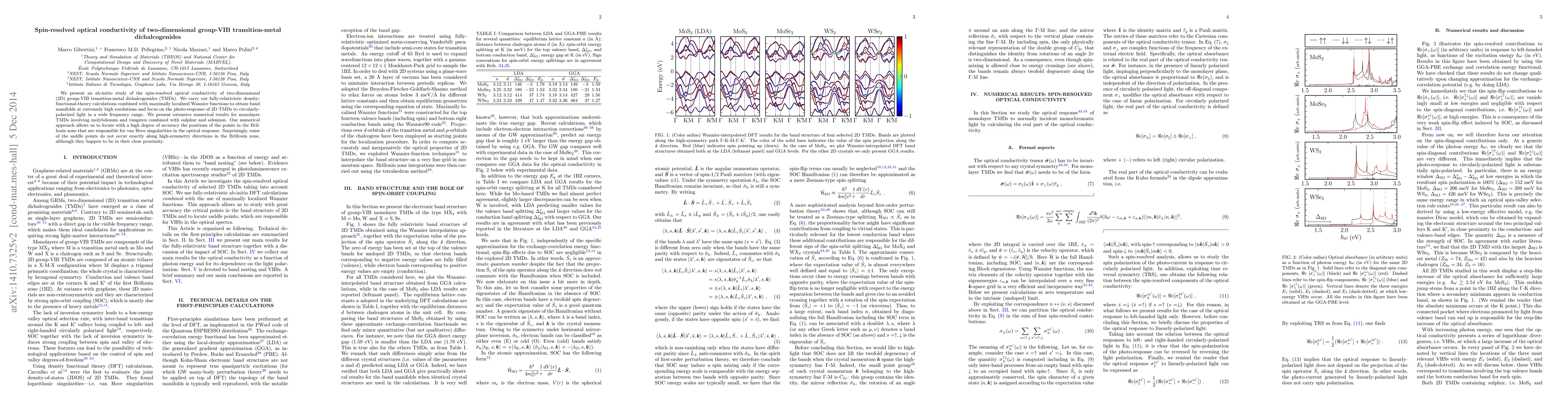 This paper presents an ab-initio study of the spin-resolved optical conductivity of 2D group-VIB TMDs using relativistic DFT and Wannier functions. The study reveals the photo-response of monolayer TMDs to circularly-polarized light, highlighting the positions of van Hove singularities, some of which deviate from high-symmetry directions in the Brillouin zone.