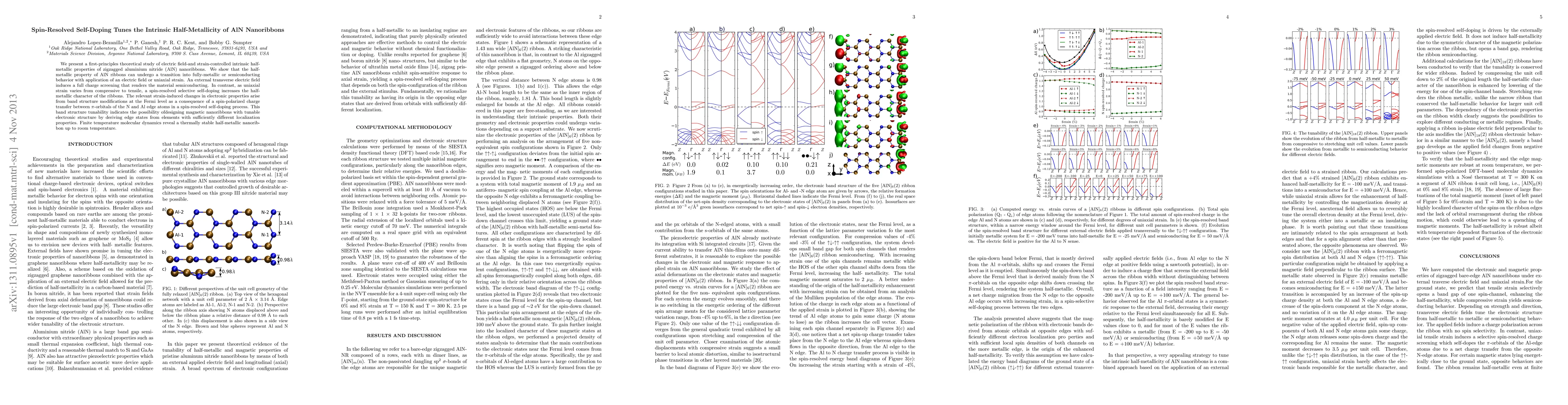 This study demonstrates that intrinsic half-metallicity in zigzagged AlN nanoribbons can be tuned via electric fields and strain, with strain inducing a spin-resolved self-doping that enhances half-metallic properties, while electric fields lead to semiconducting behavior. The findings suggest potential for designing magnetic nanoribbons with tunable electronic structures.