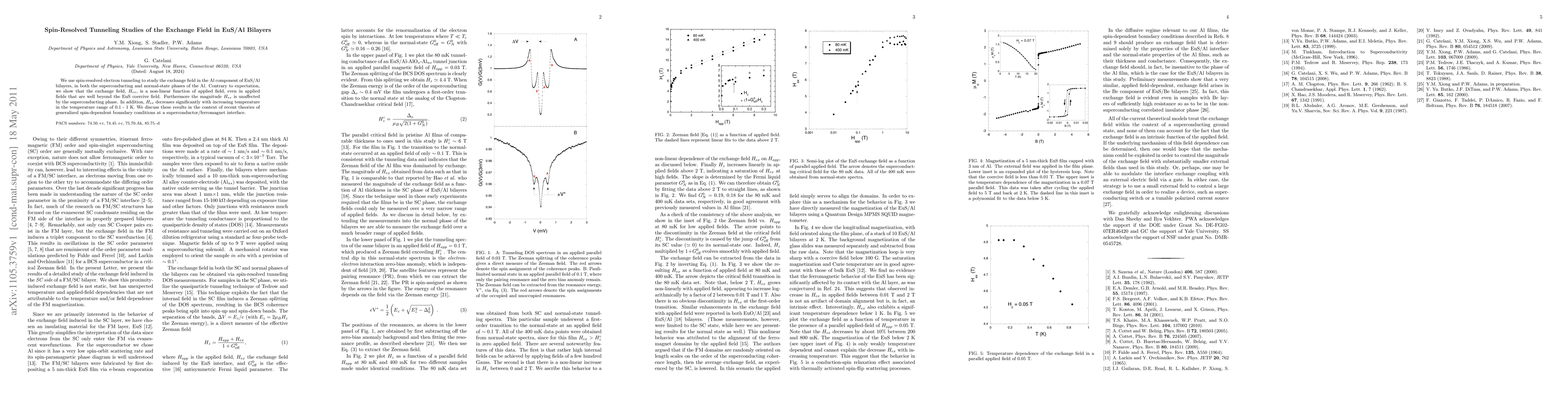 This study employs spin-resolved tunneling to investigate the exchange field in Al within EuS/Al bilayers, revealing that the exchange field is non-linear and unaffected by superconductivity, contrary to expectations. The exchange field decreases significantly with temperature in the range of 0.1-1 K, discussed in the context of recent theories on spin-dependent boundary conditions.