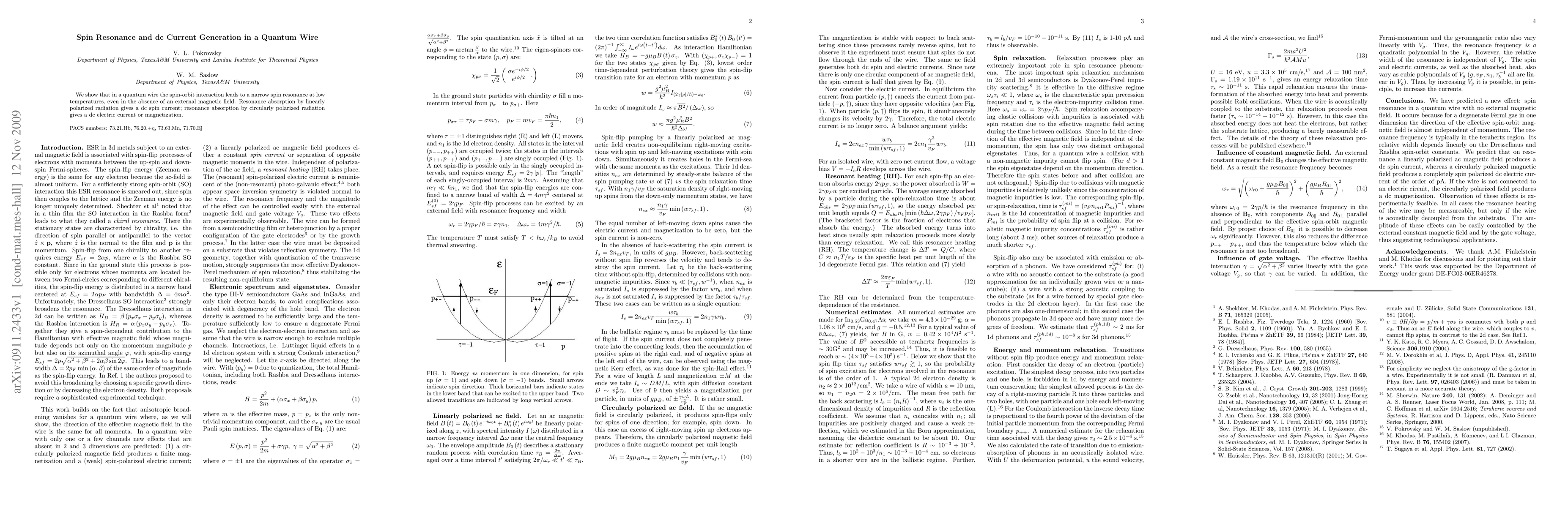 Summary: This study reveals that spin-orbit interaction in a quantum wire induces a spin resonance at low temperatures without an external magnetic field, leading to dc spin current from linearly polarized radiation and dc electric current or magnetization from circularly polarized radiation.