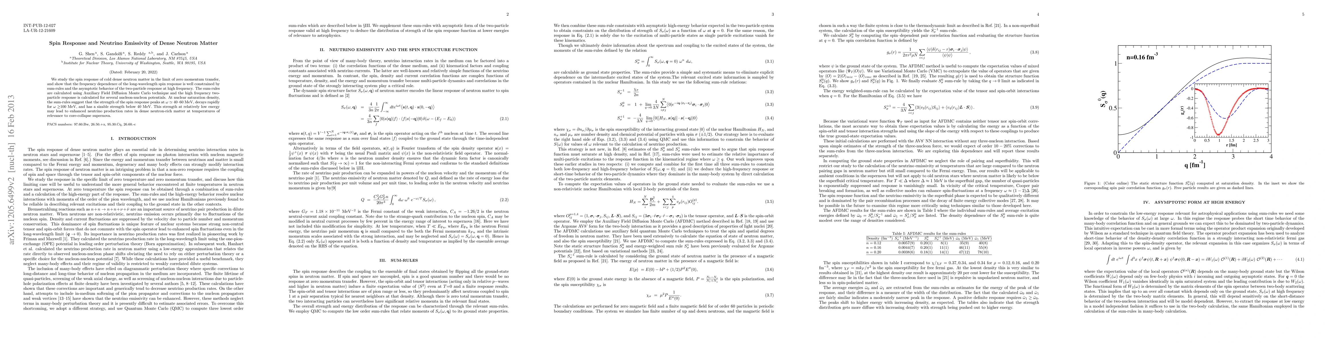 This paper investigates the spin response of cold dense neutron matter, revealing that its frequency dependence is constrained by sum-rules and high-frequency two-particle response calculations. The findings suggest a peak spin response strength at 40-60 MeV, which may enhance neutrino emissivity in neutron-rich environments like core-collapse supernovae.