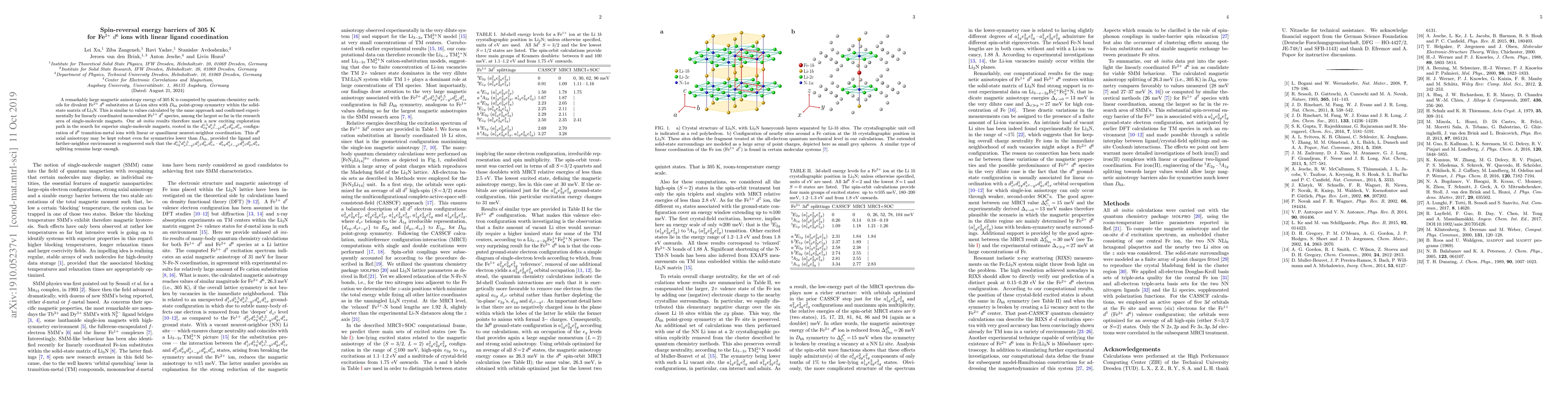 Researchers computed a large magnetic anisotropy energy of 305 K for divalent Fe^2+ d^6 ions with D6h symmetry in Li3N, similar to values for linearly coordinated Fe^1+ d^7 species. This finding opens new paths in exploring superior single-molecule magnets, based on the dxy^1.5 dx^2-y^2^1.5 dz^2^1 dyz^1 dzx^1 configuration of d^6 transition-metal ions with linear coordination.