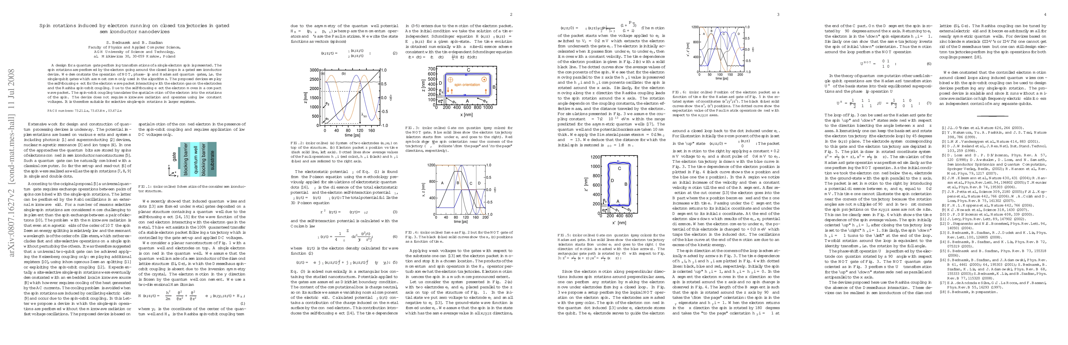 A design for a quantum gate performing transformations of a single electron spin is presented. The spin rotations are performed by the electron going around the closed loops in a gated semiconductor device. We demonstrate the operation of NOT, phase-flip and Hadamard quantum gates, i.e. the single-qubit gates which are most commonly used in the algorithms. The proposed devices employ the self-focusing effect for the electron wave packet interacting with the electron gas on the electrodes and the Rashba spin-orbit coupling. Due to the self-focusing effect the electron moves in a compact wave packet. The spin-orbit coupling translates the spatial motion of the electron into the rotations of the spin. The device does not require microwave radiation and operates using low constant voltages. It is therefore suitable for selective single-spin rotations in larger registers.