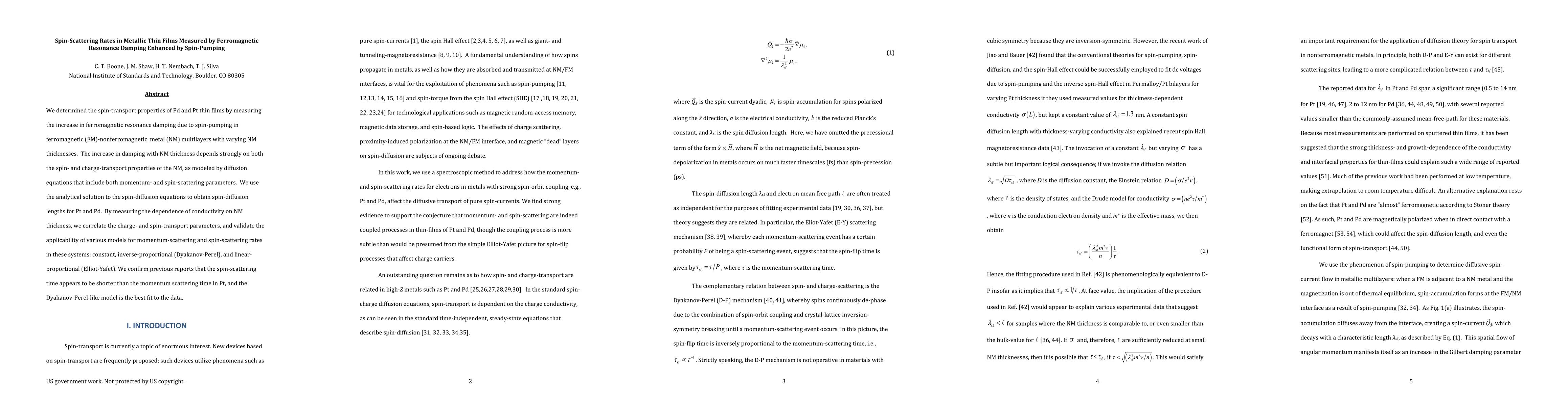 This paper measures spin-transport properties in Pd and Pt thin films using ferromagnetic resonance damping enhanced by spin-pumping. It finds that the spin-scattering time can be shorter than the momentum scattering time in Pt, with the Dyakanov-Perel-like model best fitting the observed data.