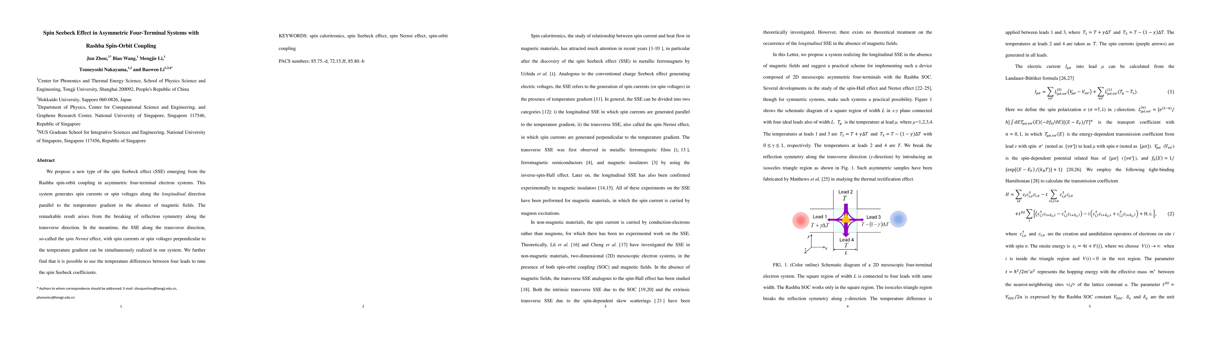 This paper proposes a novel spin Seebeck effect in asymmetric four-terminal systems with Rashba spin-orbit coupling, generating spin currents parallel to a temperature gradient without magnetic fields. It also demonstrates the simultaneous occurrence of the spin Nernst effect and tunable spin Seebeck coefficients via temperature differences among the leads.