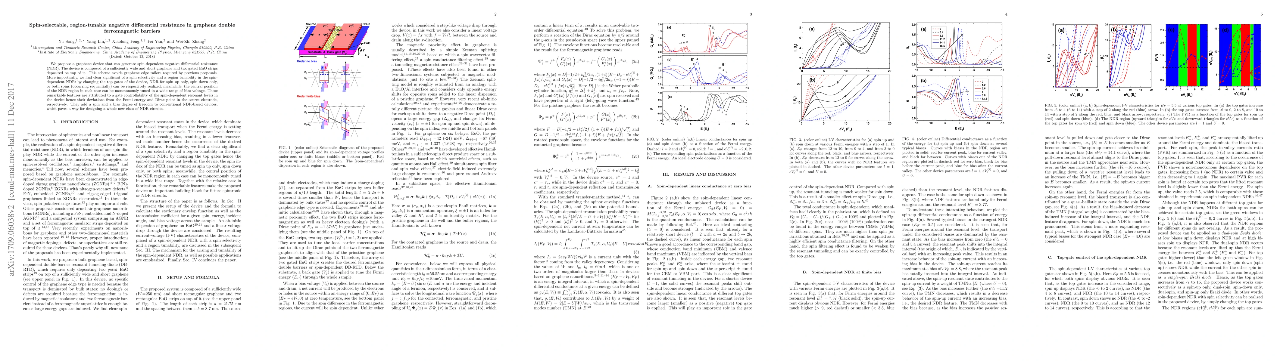 This paper proposes a graphene device with spin-selectable and region-tunable negative differential resistance (NDR) using gated ferromagnetic barriers, enabling control over NDR for specific spin states and tuning the NDR region's position via bias voltage. These features open up possibilities for advanced NDR circuit designs.