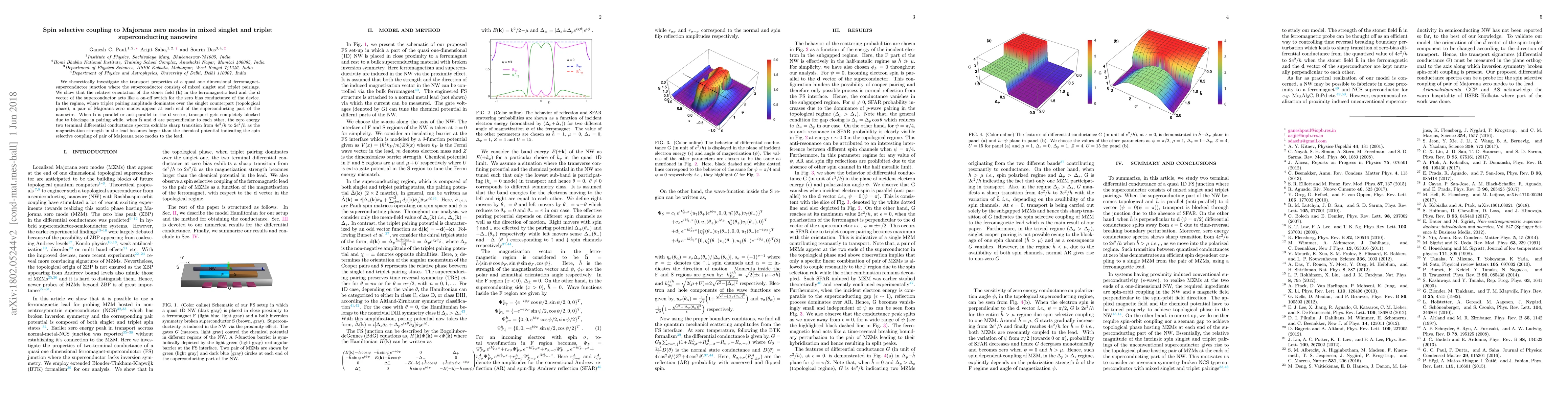 We theoretically investigate the transport properties of a quasi one dimensional ferromagnet-superconductor junction where the superconductor consists of mixed singlet and triplet pairings. We show that the relative orientation of the stoner field ($\bf{\tilde{h}}$) in the ferromagnetic lead and the $\bf{d}$ vector of the superconductor acts like a on-off switch for the zero bias conductance of the device. In the regime, where triplet pairing amplitude dominates over the singlet counterpart (topological phase), a pair of Majorana zero modes appear at each end of the superconducting part of the nanowire. When $\bf{\tilde{h}}$ is parallel or anti-parallel to the $\bf{d}$ vector, transport gets completely blocked due to blockage in pairing while, when $\bf{\tilde{h}}$ and $\bf{d}$ are perpendicular to each other, the zero energy two terminal differential conductance spectra exhibits sharp transition from $4e^2/h$ to $2e^2/h$ as the magnetization strength in the lead becomes larger than the chemical potential indicating the spin selective coupling of pair of Majorana zero modes to the lead.