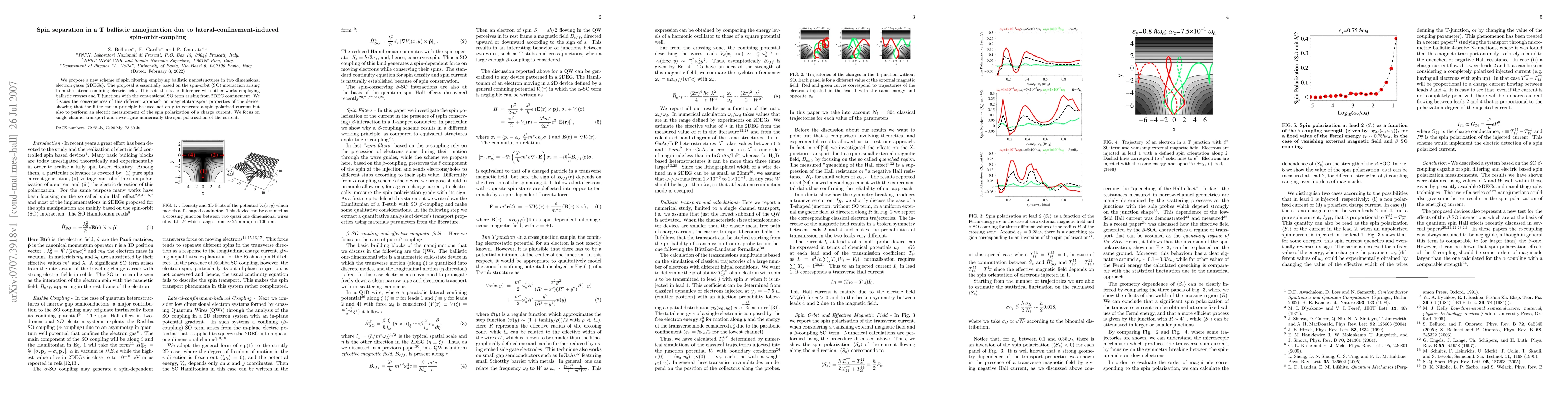 We propose a new scheme of spin filtering employing ballistic nanostructures in two dimensional electron gases (2DEGs). The proposal is essentially based on the spin-orbit (SO) interaction arising from the lateral confining electric field. This sets the basic difference with other works employing ballistic crosses and T junctions with the conventional SO term arising from 2DEG confinement. We discuss the consequences of this different approach on magnetotransport properties of the device, showing that the filter can in principle be used not only to generate a spin polarized current but also to perform an electric measurement of the spin polarization of a charge current. We focus on single-channel transport and investigate numerically the spin polarization of the current.