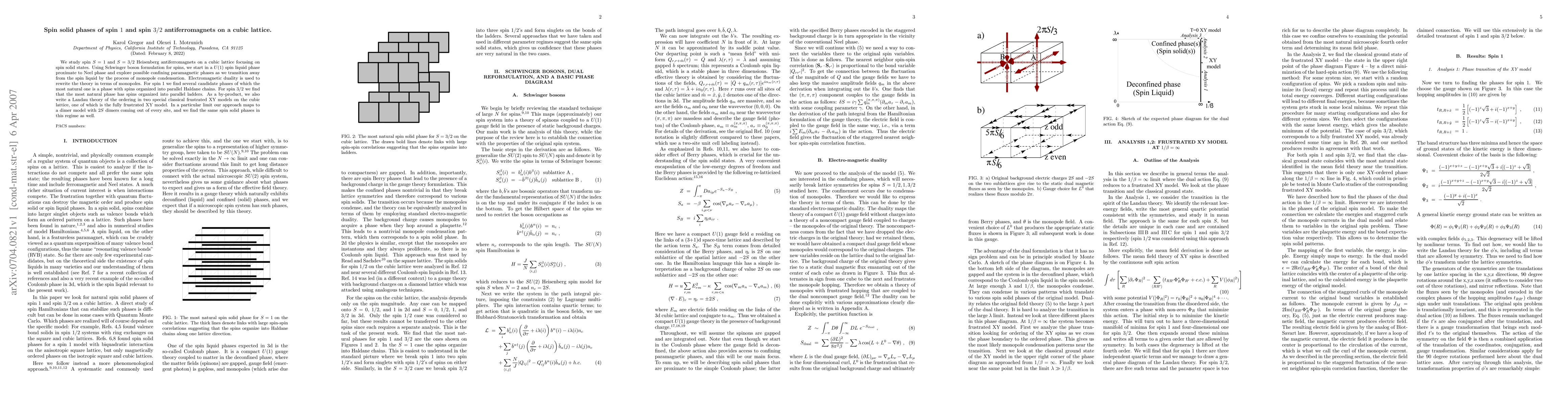 This paper explores spin solid phases in spin S=1 and S=3/2 Heisenberg antiferromagnets on a cubic lattice, identifying phases via monopole condensation and electromagnetic duality. For spin 1, it finds parallel Haldane chains, while for spin 3/2, it identifies parallel ladders as the natural spin solid phases.