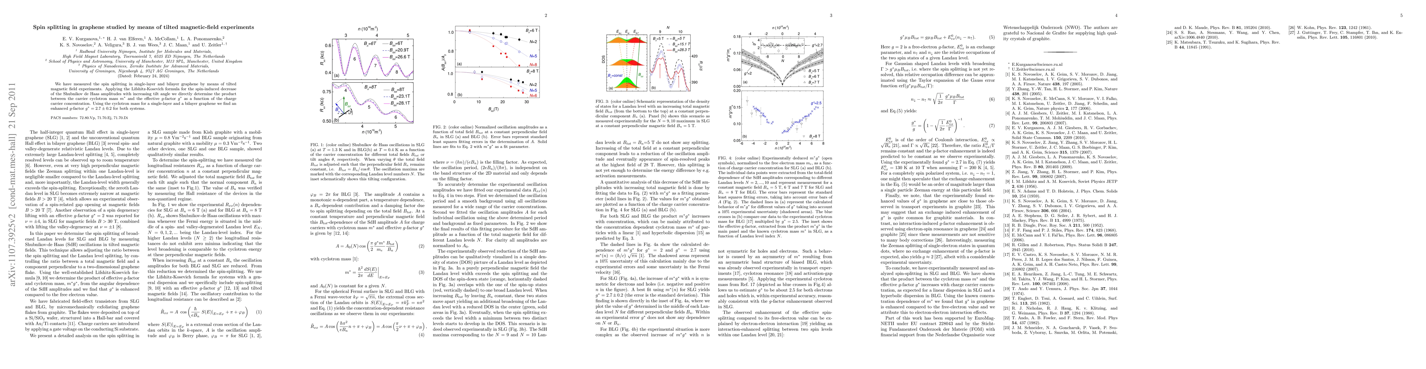 Researchers measured spin splitting in graphene using tilted magnetic field experiments, finding an enhanced g-factor of 2.7 in both single-layer and bilayer graphene.