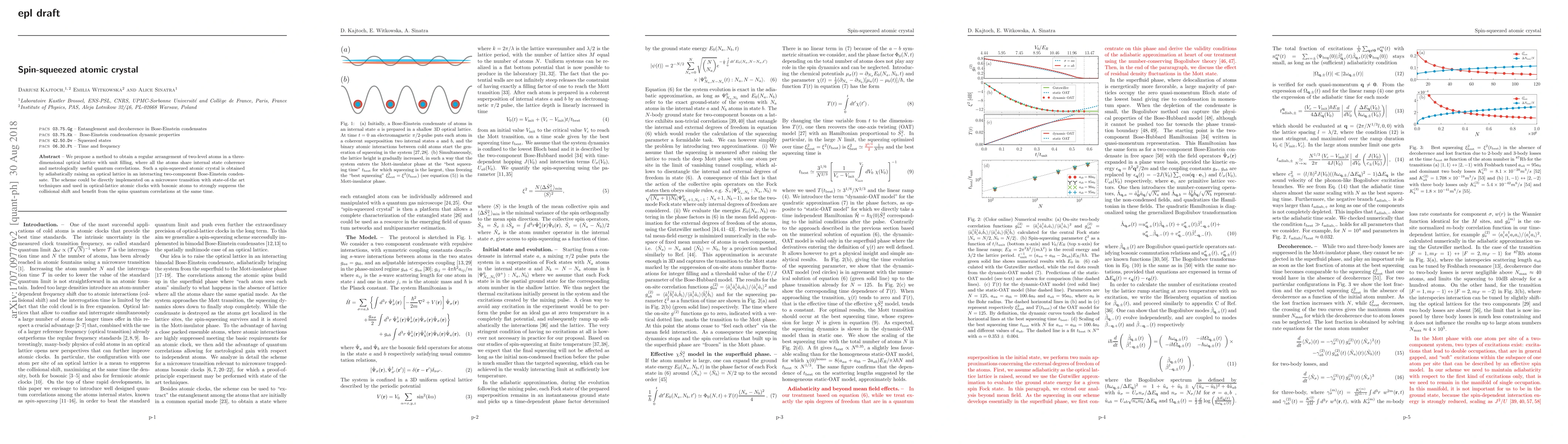This paper proposes a method to create a spin-squeezed atomic crystal in a three-dimensional optical lattice, achieving coherence and quantum correlations among atoms. This setup, realized in a Bose-Einstein condensate, could enhance optical-lattice atomic clocks by reducing collisional shifts.