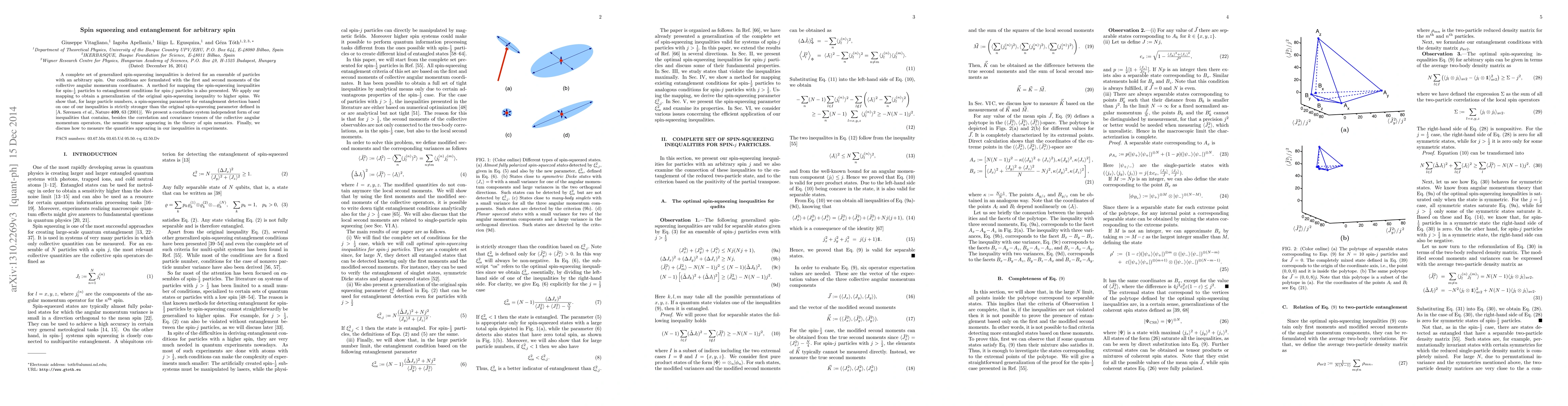 This paper derives generalized spin-squeezing inequalities for arbitrary spin particles and presents a method to map spin-squeezing conditions for spin-1/2 particles to entanglement conditions for higher spin particles. It shows that a new entanglement detection parameter is stronger for large particle numbers compared to the original spin-squeezing parameter.