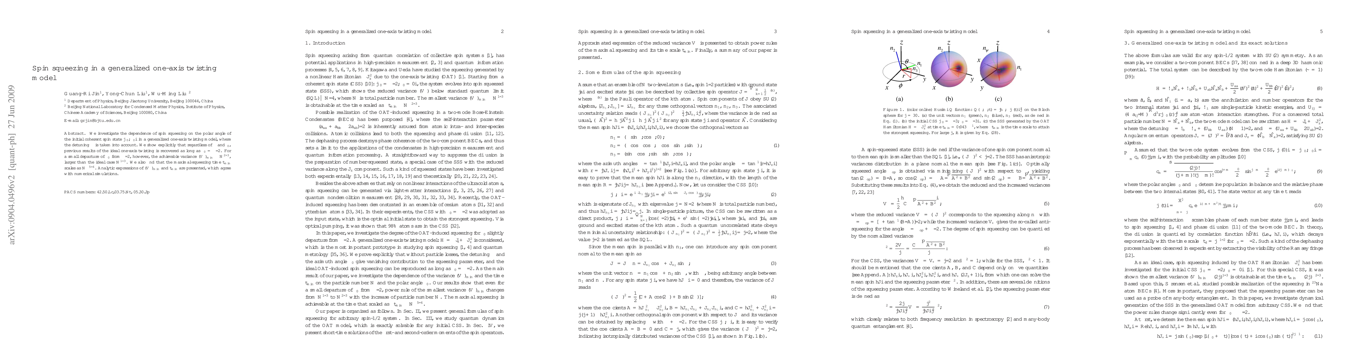 This paper explores spin squeezing in a generalized one-axis twisting model, demonstrating that for initial states with $\theta_0=\pi/2$, the ideal squeezing results are recovered regardless of detuning $\delta$. For small deviations from $\pi/2$, the achievable variance is larger than in the ideal case, scaling as $N^{2/3}$ instead of $N^{1/3}$, and the maximal-squeezing time scales as $N^{-5/6}$.
