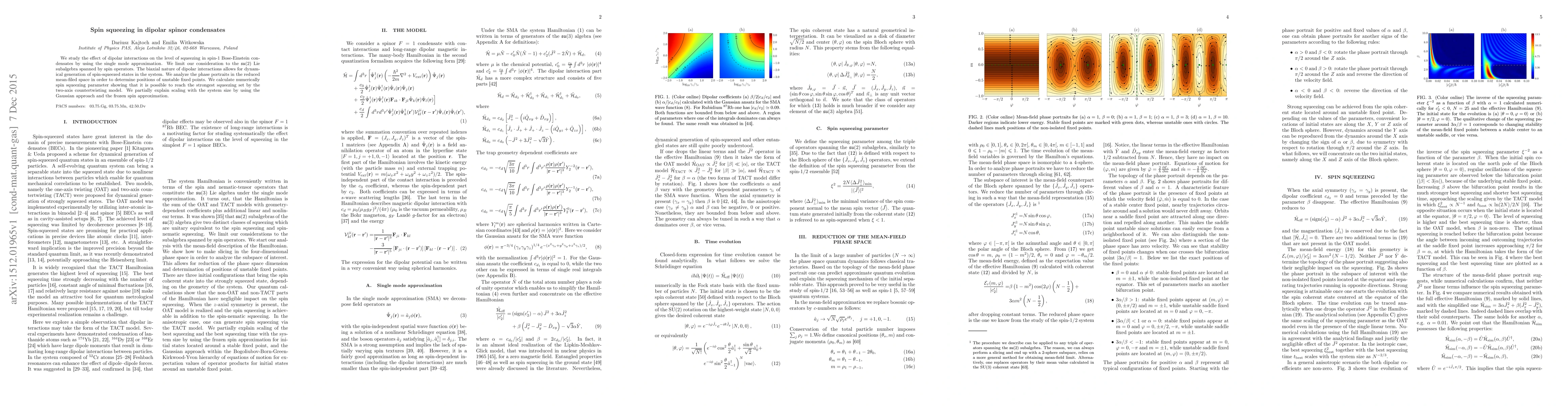 We study the effect of dipolar interactions on the level of squeezing in spin-1 Bose-Einstein condensates by using the single mode approximation. We limit our consideration to the $\mathfrak{su}(2)$ Lie subalgebra spanned by spin operators. The biaxial nature of dipolar interactions allows for dynamical generation of spin-squeezed states in the system. We analyze the phase portraits in the reduced mean-filed space in order to determine positions of unstable fixed points. We calculate numerically spin squeezing parameter showing that it is possible to reach the strongest squeezing set by the two-axis countertwisting model. We partially explain scaling with the system size by using the Gaussian approach and the frozen spin approximation.