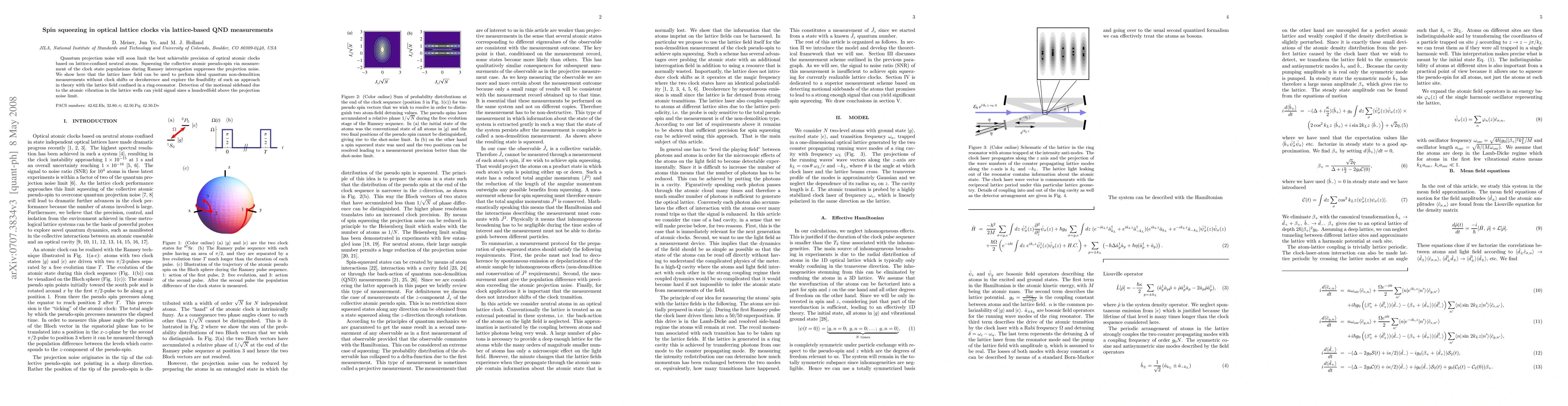 This paper investigates spin squeezing in optical lattice clocks to mitigate quantum projection noise, achieving enhanced precision. It demonstrates the potential of using lattice-based quantum non-demolition measurements to suppress noise, with theoretical exploration showing significant signal improvement.