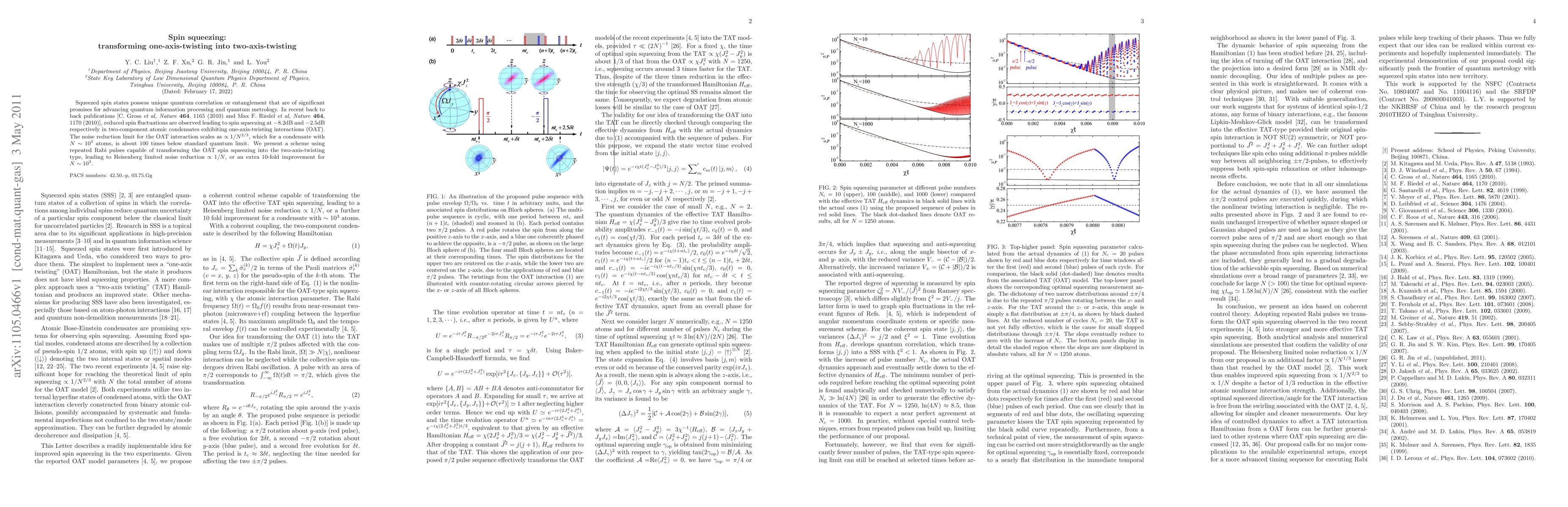 This paper proposes a method to enhance spin squeezing in atomic condensates by transforming one-axis-twisting interactions into two-axis-twisting interactions using repeated Rabi pulses, achieving a tenfold improvement in noise reduction compared to standard quantum limits.