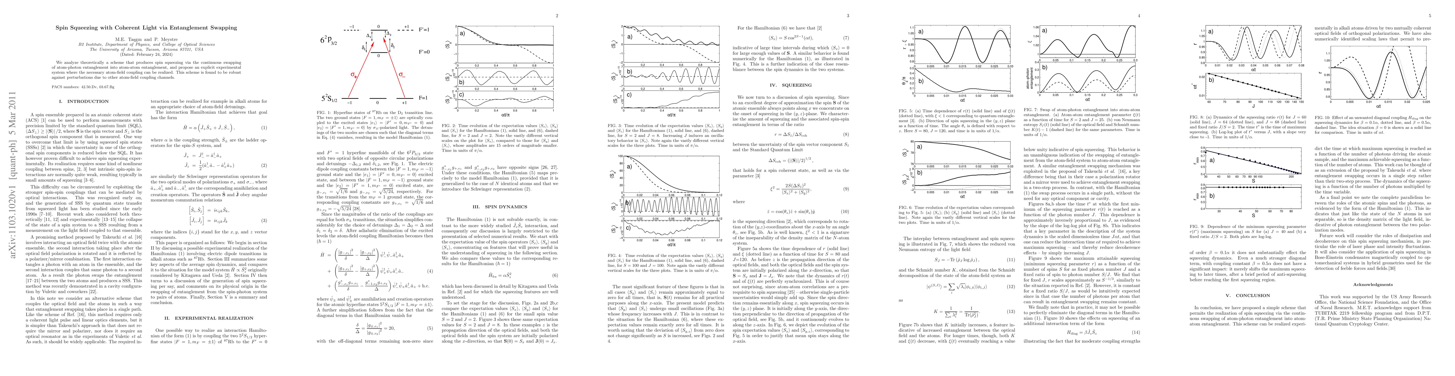 The research analyzes a theoretical scheme for producing spin squeezing via continuous swapping of atom-photon entanglement into atom-atom entanglement, proposing an experimental system using 87Rb atoms and coherent light.