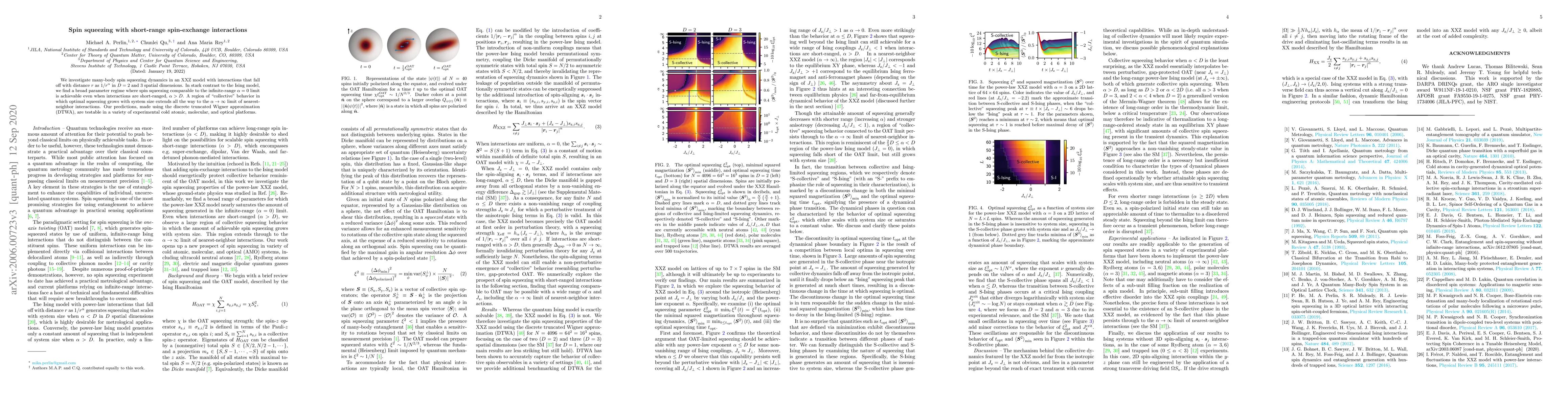 This paper explores many-body spin squeezing in an XXZ model with short-range spin-exchange interactions, showing that significant squeezing can occur even when interactions are short-ranged. Predictions using the DTWA suggest this behavior is observable in cold atomic, molecular, and optical systems.