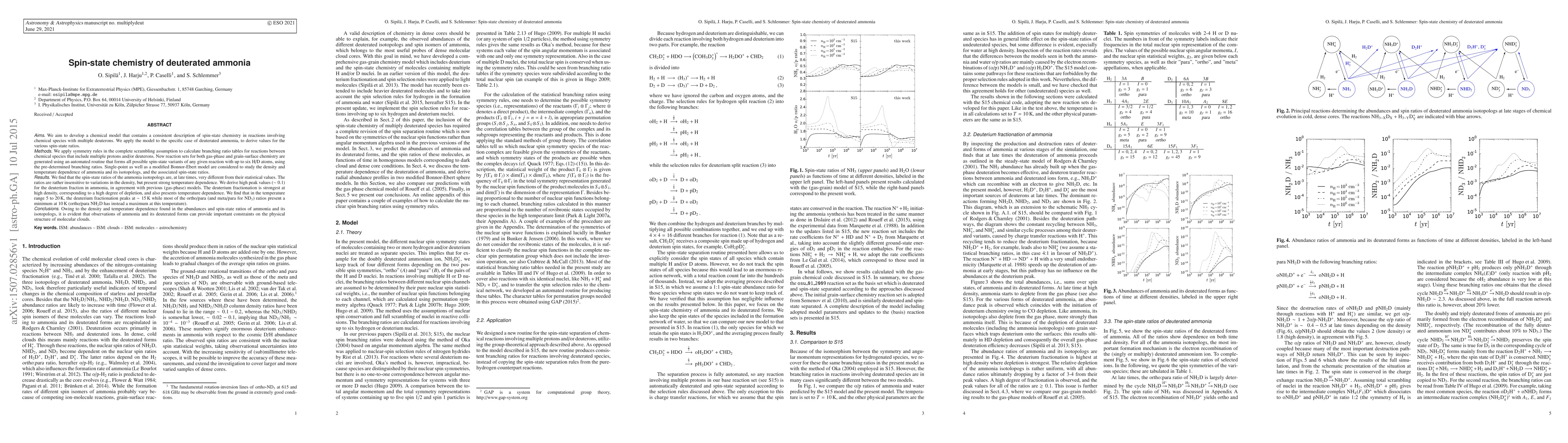 Researchers developed a model to study spin-state chemistry in deuterated ammonia, finding that deuterium fractionation varies with density and temperature, providing important constraints on molecular cloud structure.