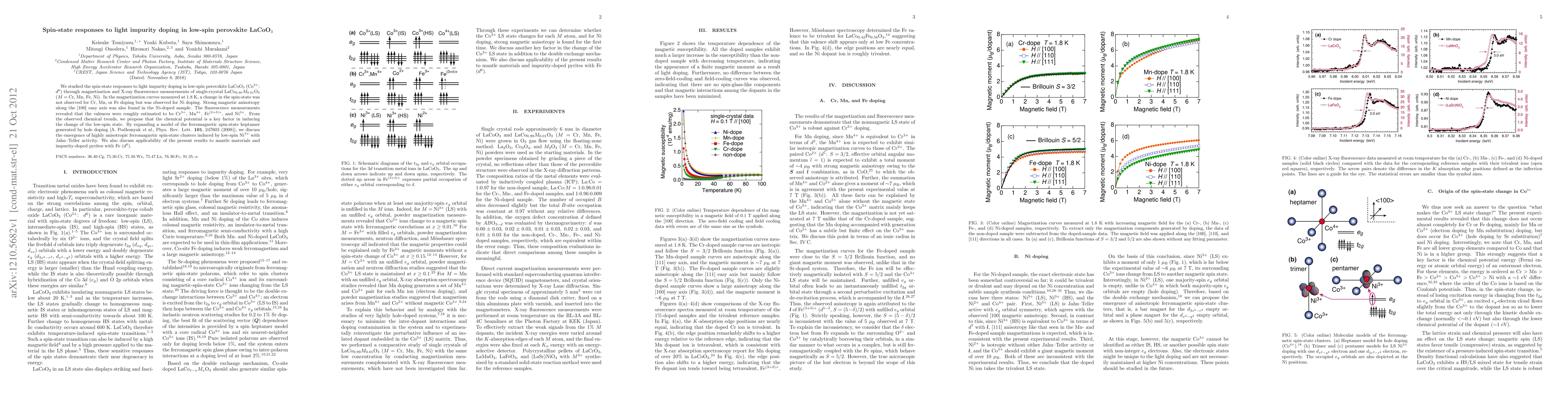 This study investigates low-spin perovskite LaCoO3's response to light impurity doping using magnetization and X-ray fluorescence measurements. It found that Cr, Mn, and Fe doping didn't alter the spin-state, but Ni doping did, revealing magnetic anisotropy along the [100] easy axis. Valences were estimated as Cr3+, Mn4+, Fe^(3+delta)+, and Ni3+. The research proposes chemical potential's significance in spin-state changes and discusses the formation of ferromagnetic spin-state clusters by low-spin Ni3+ with Jahn-Teller activity, with potential implications for mantle materials and Fe-doped pyrites.