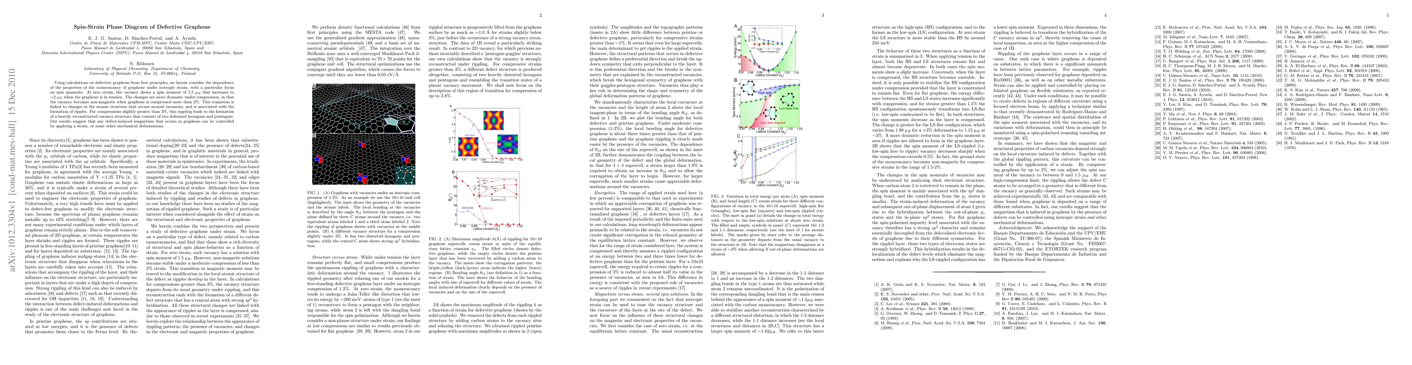 Using calculations on defective graphene from first principles, we herein consider the dependence of the properties of the monovacancy of graphene under isotropic strain, with a particular focus on spin moments. At zero strain, the vacancy shows a spin moment of 1.5 $\mu_B$ that increases to $\sim$2 $\mu_B$ when the graphene is in tension. The changes are more dramatic under compression, in that the vacancy becomes non-magnetic when graphene is compressed more than 2%. This transition is linked to changes in the atomic structure that occurs around vacancies, and is associated with the formation of ripples. For compressions slightly greater than 3%, this rippling leads to the formation of a heavily reconstructed vacancy structure that consists of two deformed hexagons and pentagons. Our results suggest that any defect-induced magnetism that occurs in graphene can be controlled by applying a strain, or some other mechanical deformations.