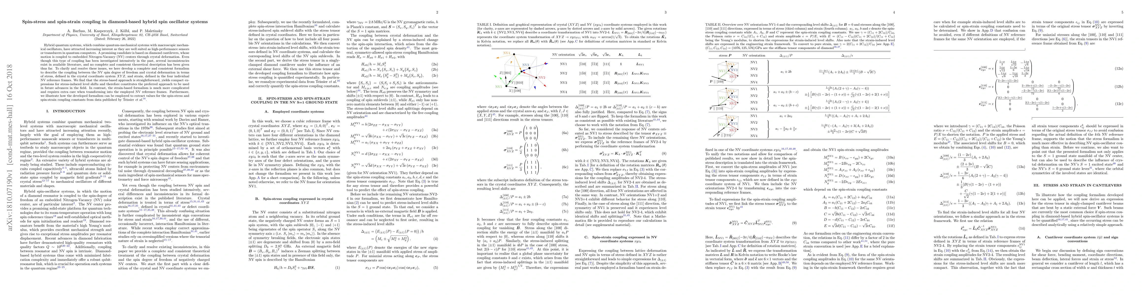 Hybrid quantum systems, which combine quantum-mechanical systems with macroscopic mechanical oscillators, have attracted increasing interest as they are well suited as high-performance sensors or transducers in quantum computers. A promising candidate is based on diamond cantilevers, whose motion is coupled to embedded Nitrogen-Vacancy (NV) centers through crystal deformation. Even though this type of coupling has been investigated intensively in the past, several inconsistencies exist in available literature, and no complete and consistent theoretical description has been given thus far. To clarify and resolve these issues, we here develop a complete and consistent formalism to describe the coupling between the NV spin degree of freedom and crystal deformation in terms of stress, defined in the crystal coordinate system XYZ, and strain, defined in the four individual NV reference frames. We find that the stress-based approach is straightforward, yields compact expressions for stress-induced level shifts and therefore constitutes the preferred approach to be used in future advances in the field. In contrast, the strain-based formalism is much more complicated and requires extra care when transforming into the employed NV reference frames. Furthermore, we illustrate how the developed formalism can be employed to extract values for the spin-stress and spin-strain coupling constants from data published by Teissier et al..