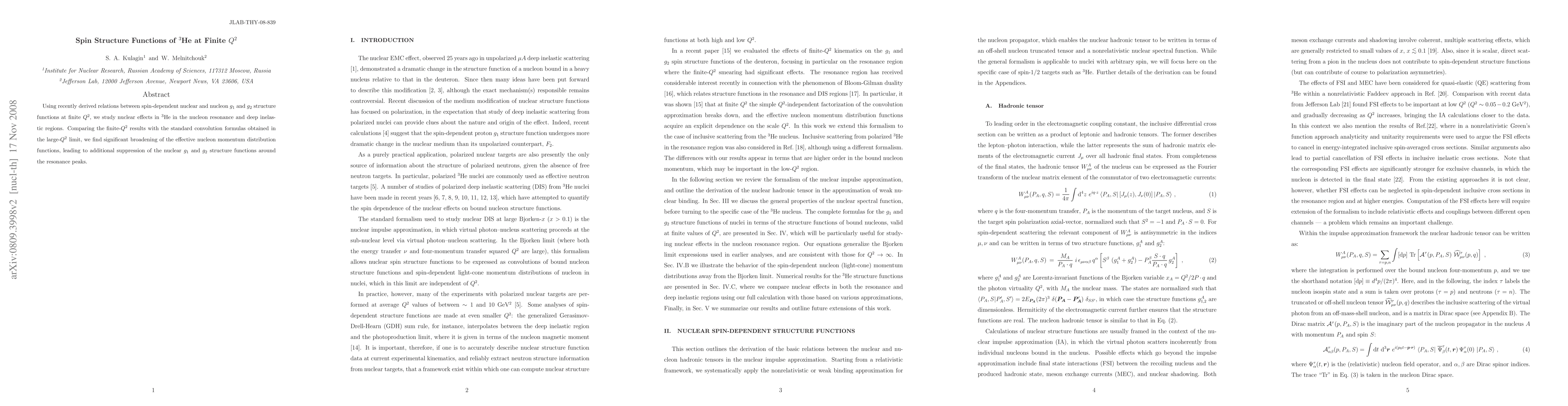 This paper investigates the spin structure functions of 3He at finite Q^2, revealing significant broadening of effective nucleon momentum distributions and additional suppression of nuclear g_1 and g_2 structure functions in the nucleon resonance and deep inelastic regions compared to large-Q^2 limits.