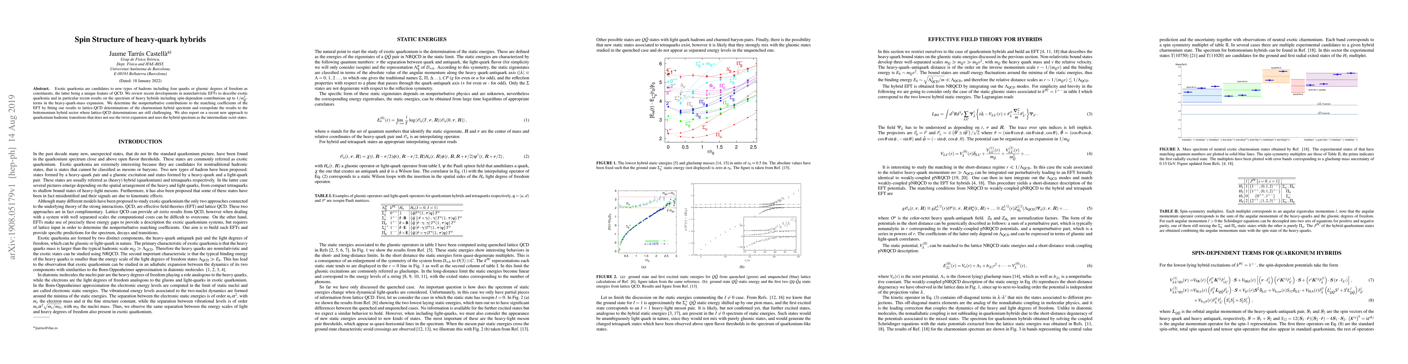 This paper reviews recent advancements in nonrelativistic effective field theories (EFTs) for describing exotic quarkonia, focusing on the spin structure of heavy-quark hybrids. The authors determine nonperturbative contributions to matching coefficients and extrapolate findings from charmonium to the more challenging bottomonium hybrid sector using lattice-QCD data.