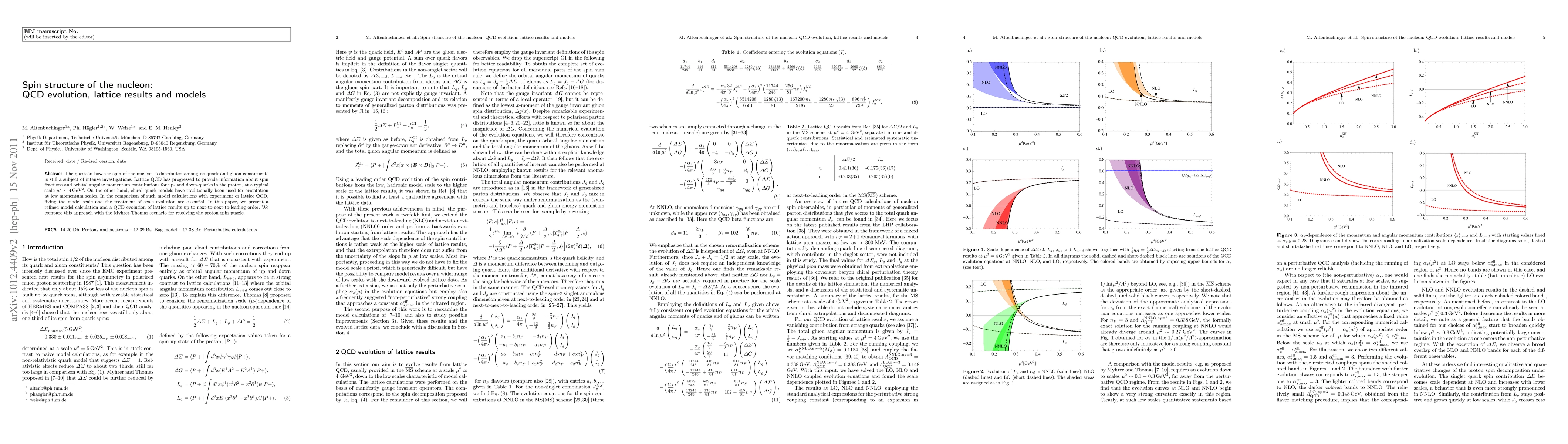 The question how the spin of the nucleon is distributed among its quark and gluon constituents is still a subject of intense investigations. Lattice QCD has progressed to provide information about spin fractions and orbital angular momentum contributions for up- and down-quarks in the proton, at a typical scale \mu^2~4 GeV^2. On the other hand, chiral quark models have traditionally been used for orientation at low momentum scales. In the comparison of such model calculations with experiment or lattice QCD, fixing the model scale and the treatment of scale evolution are essential. In this paper, we present a refined model calculation and a QCD evolution of lattice results up to next-to-next-to-leading order. We compare this approach with the Myhrer-Thomas scenario for resolving the proton spin puzzle.