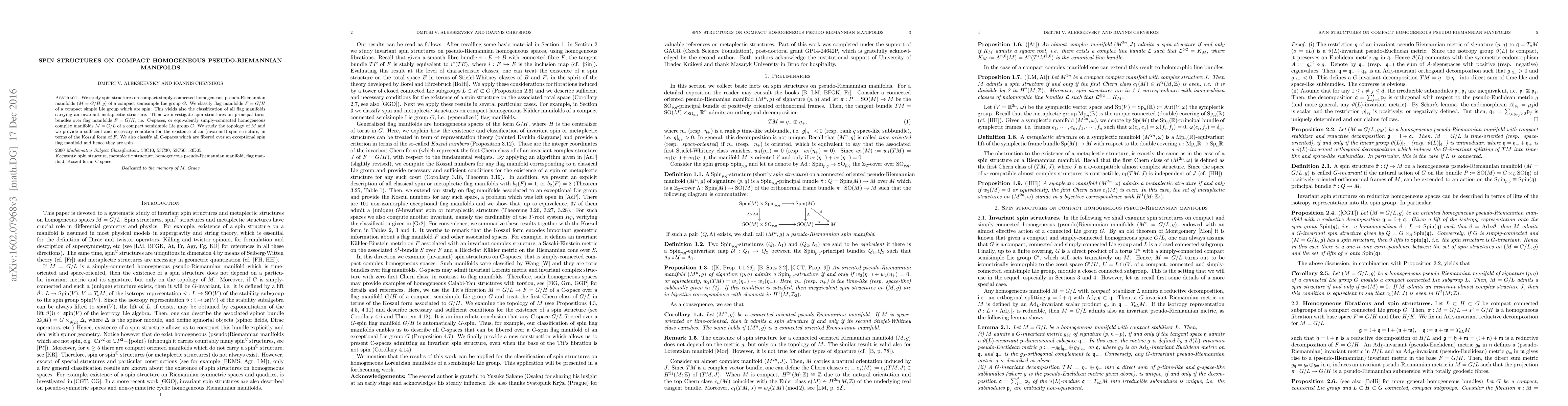 This paper classifies spin structures on compact homogeneous pseudo-Riemannian manifolds, focusing on flag manifolds of compact simple Lie groups and C-spaces. It provides a necessary and sufficient condition for the existence of invariant spin structures in terms of the Koszul form.