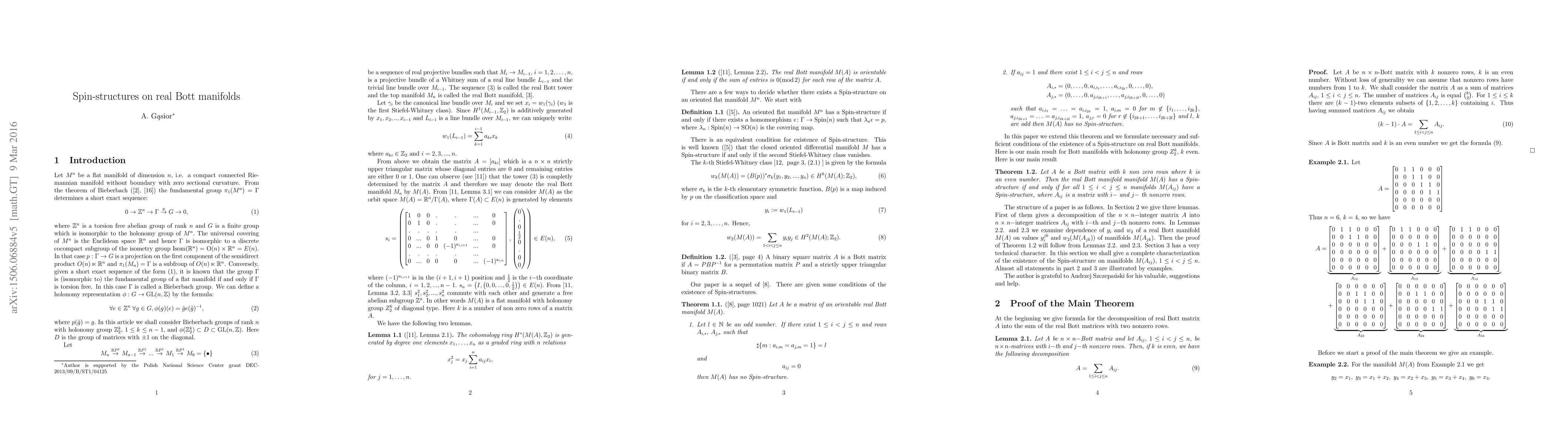 real Bott manifolds. In this paper, if k is even, we formulate necessary and