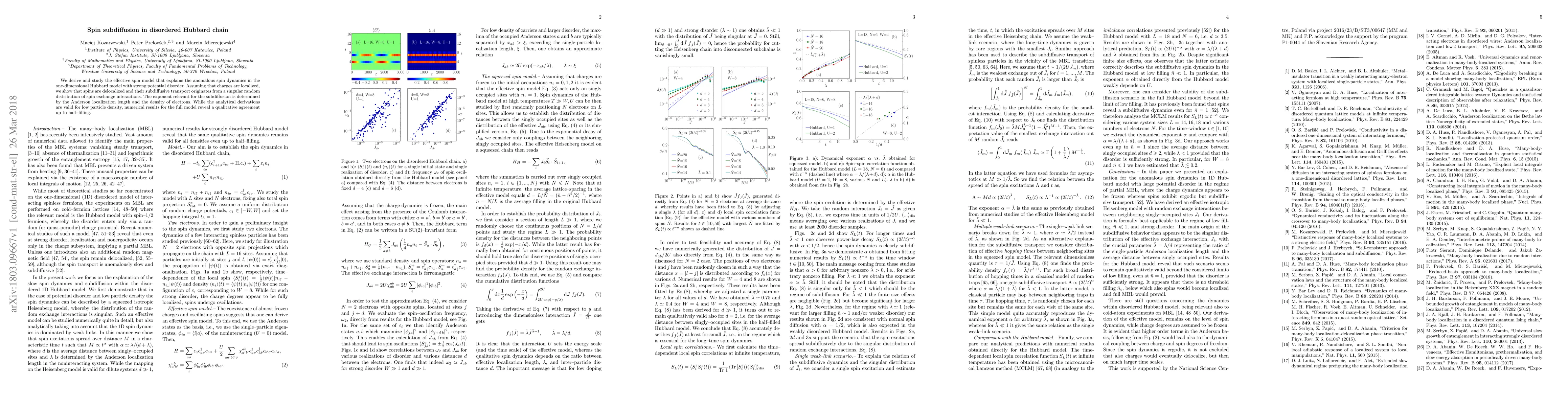 This study reveals that spin subdiffusion in a disordered Hubbard chain originates from a singular random distribution of spin exchange interactions, leading to delocalized spins.