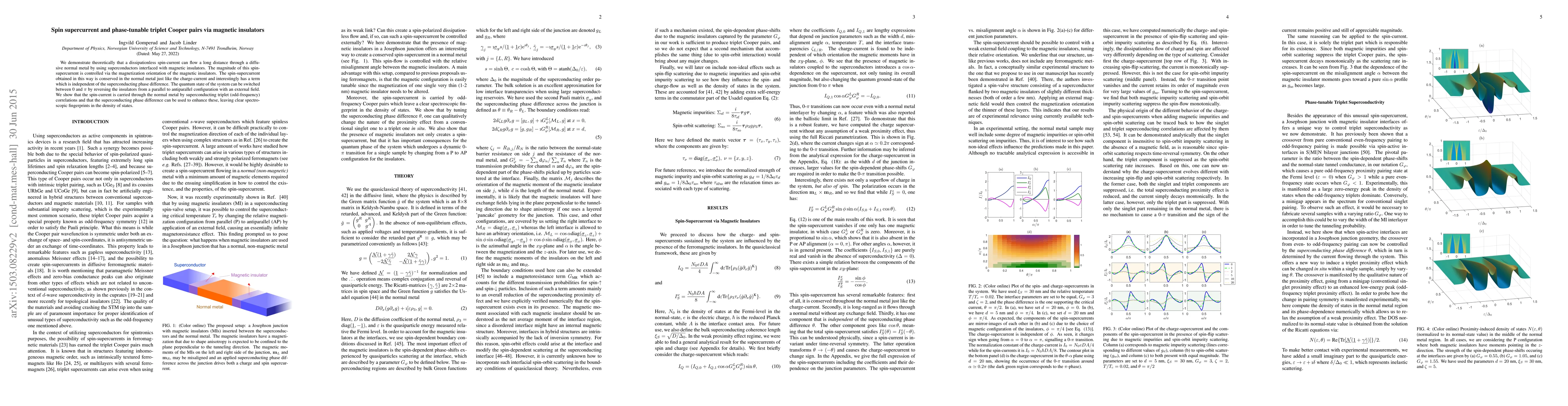 This paper theoretically demonstrates a dissipationless spin supercurrent in a diffusive normal metal interfaced with magnetic insulators, controlled by the insulators' magnetization orientation. The spin supercurrent is conserved and can be phase-tuned between 0 and $\pi$ states, carried by triplet Cooper pairs, with spectroscopic signatures in the density of states.