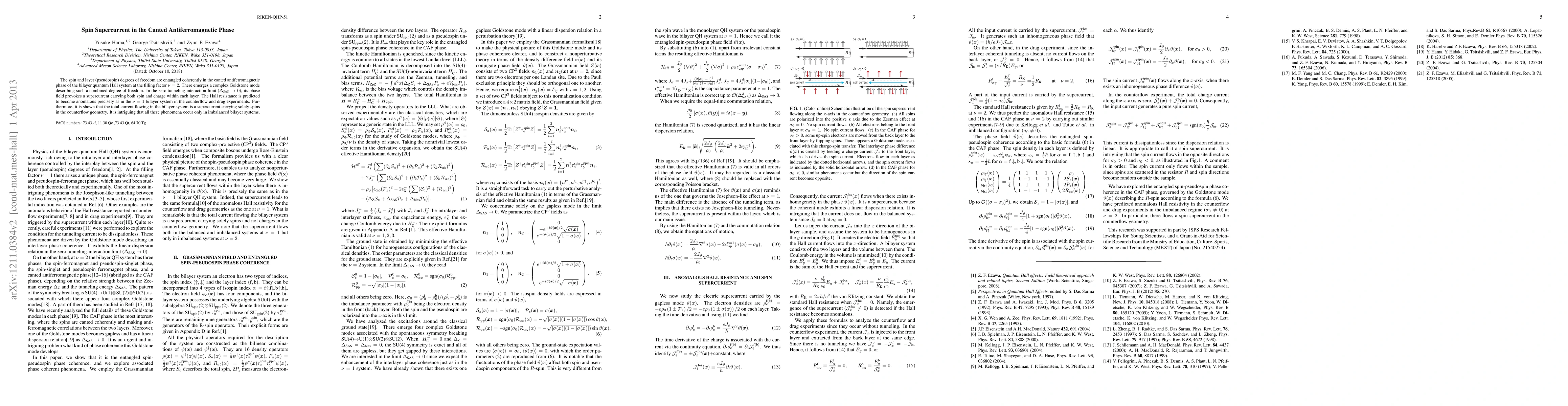 The spin and layer (pseudospin) degrees of freedom are entangled coherently in the canted antiferromagnetic phase of the bilayer quantum Hall system at the filling factor $\nu =2$. There emerges a complex Goldstone mode describing such a combined degree of freedom. In the zero tunneling-interaction limit ($\Delta_{\text{SAS}}\rightarrow 0$), its phase field provokes a supercurrent carrying both spin and charge within each layer. The Hall resistance is predicted to become anomalous precisely as in the $\nu =1$ bilayer system in the counterflow and drag experiments. Furthermore, it is shown that the total current flowing in the bilayer system is a supercurrent carrying solely spins in the counterflow geometry. It is intriguing that all these phenomena occur only in imbalanced bilayer systems.