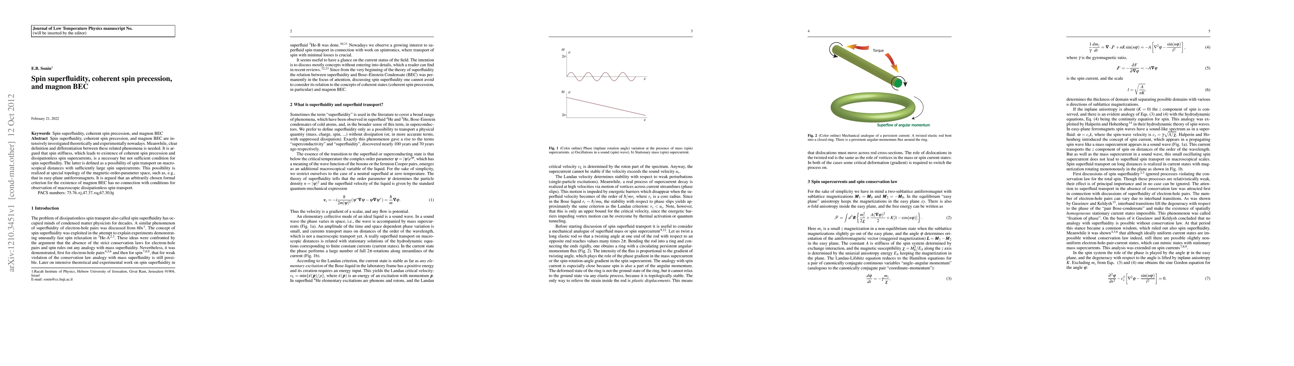 This paper explores the distinctions between spin superfluidity, coherent spin precession, and magnon BEC, arguing that spin superfluidity requires a special topology of the magnetic-order-parameter space, while coherent spin precession and magnon BEC are not directly linked to macroscopic dissipationless spin transport.