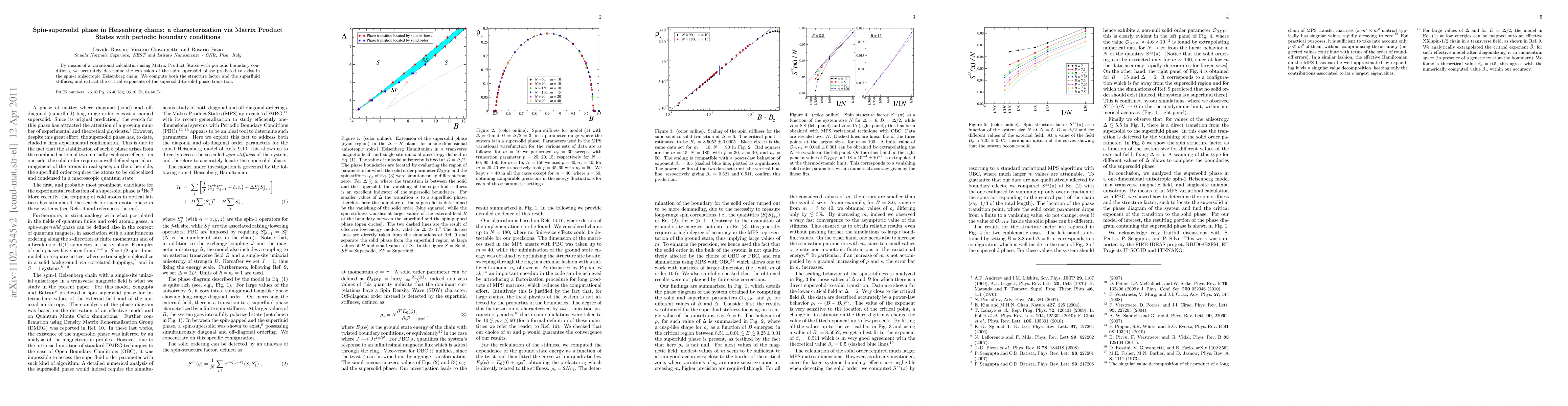 By means of a variational calculation using Matrix Product States with periodic boundary conditions, we accurately determine the extension of the spin-supersolid phase predicted to exist in the spin-1 anisotropic Heisenberg chain. We compute both the structure factor and the superfluid stiffness, and extract the critical exponents of the supersolid-to-solid phase transition.