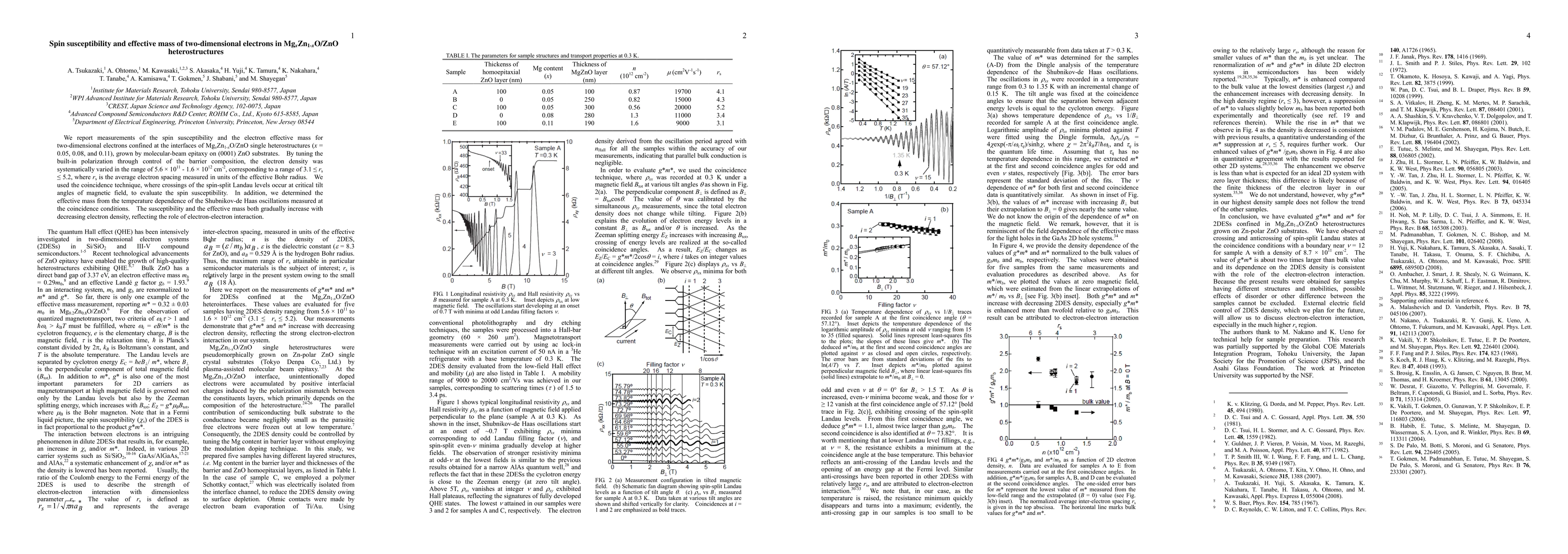 This paper measures the spin susceptibility and effective mass of two-dimensional electrons in MgxZn1-xO/ZnO heterostructures, finding that both properties increase with decreasing electron density due to electron-electron interactions. The study utilized the coincidence technique and Shubnikov-de Haas oscillations to evaluate these properties.