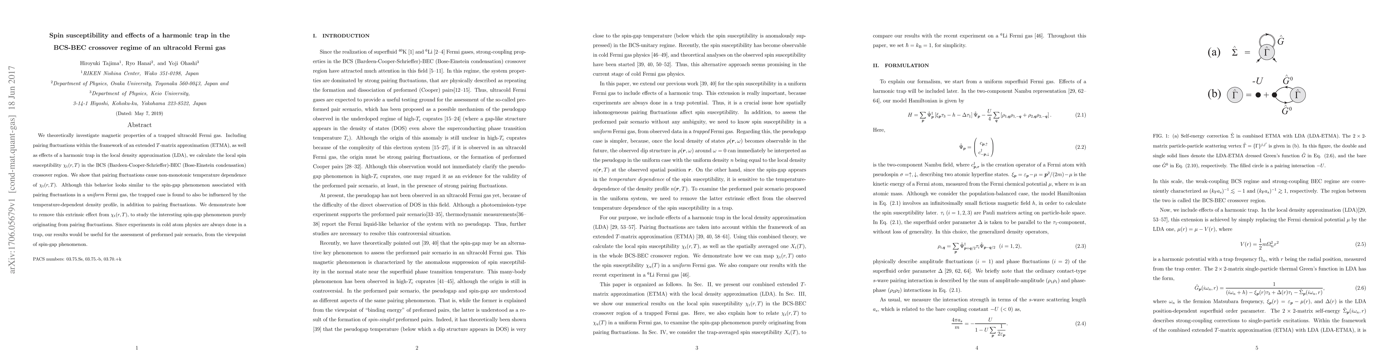 This paper investigates the magnetic properties of a trapped ultracold Fermi gas, focusing on the local spin susceptibility in the BCS-BEC crossover regime. It reveals non-monotonic temperature dependence due to pairing fluctuations and the influence of the harmonic trap, and proposes a method to isolate the intrinsic spin-gap effect from pairing fluctuations.