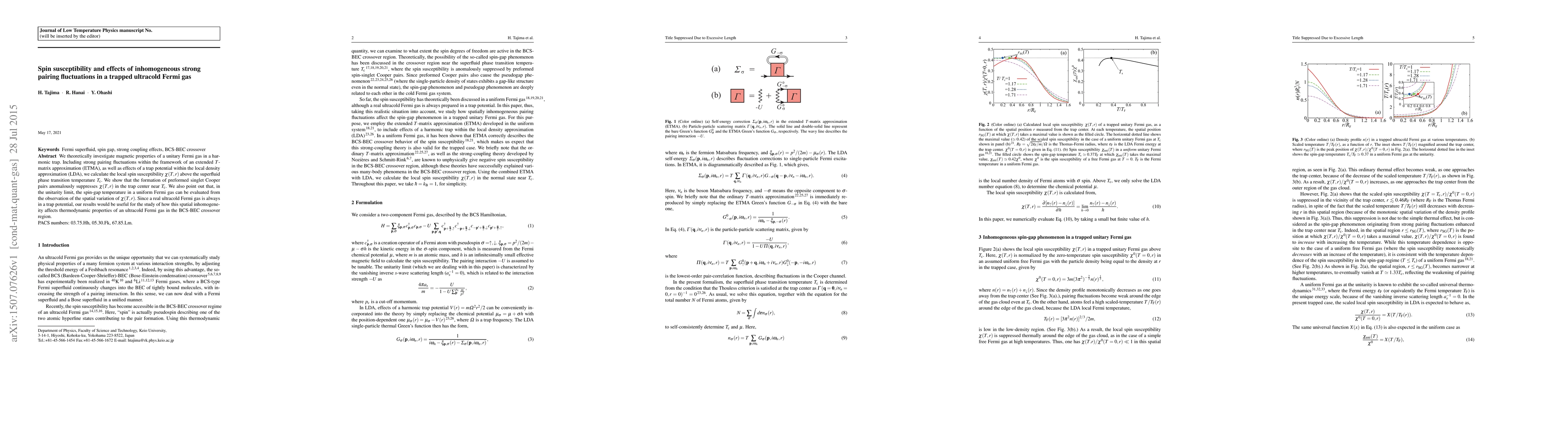 This paper investigates magnetic properties of a trapped ultracold Fermi gas, showing that strong pairing fluctuations suppress local spin susceptibility near the critical temperature. The study uses an extended $T$-matrix approximation and local density approximation to analyze the spatial variation of spin susceptibility, revealing insights into the effects of spatial inhomogeneity on thermodynamic properties in the BCS-BEC crossover.
