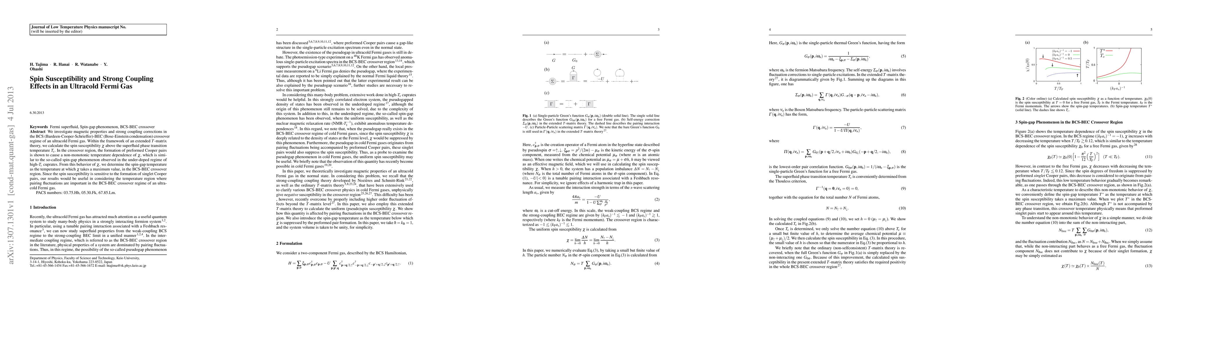 We investigate magnetic properties and strong coupling corrections in the BCS (Bardeen-Cooper-Schrieffer)-BEC (Bose-Einstein condensation) crossover regime of an ultracold Fermi gas. Within the framework of an extended $T$-matrix theory, we calculate the spin susceptibility $\chi$ above the superfluid phase transition temperature $T_{\rm c}$. In the crossover region, the formation of preformed Cooper pairs is shown to cause a non-monotonic temperature dependence of $\chi$, which is similar to the so-called spin-gap phenomenon observed in the under-doped regime of high-$T_{c}$ cuprates. From this behavior of $\chi$, we determine the spin-gap temperature as the temperature at which $\chi$ takes a maximum value, in the BCS-BEC crossover region. Since the spin susceptibility is sensitive to the formation of singlet Cooper pairs, our results would be useful in considering the temperature region where pairing fluctuations are important in the BCS-BEC crossover regime of an ultracold Fermi gas.
