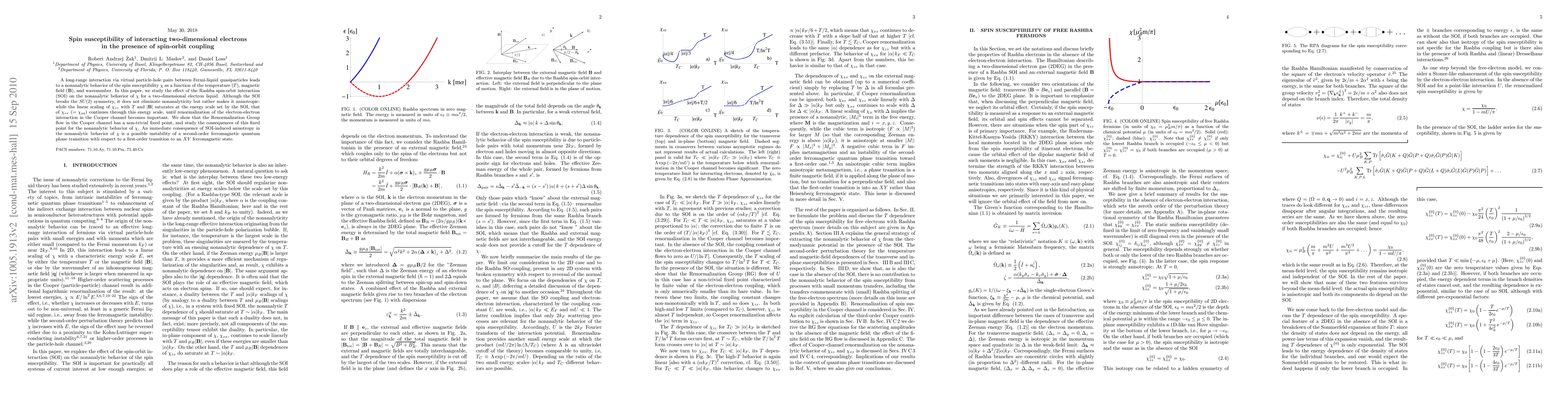 A long-range interaction via virtual particle-hole pairs between Fermi-liquid quasiparticles leads to a nonanalytic behavior of the spin susceptibility $\chi$ as a function of the temperature ($T$), magnetic field ($\mathbf{B}$), and wavenumber. In this paper, we study the effect of the Rashba spin-orbit interaction (SOI) on the nonanalytic behavior of $\chi$ for a two-dimensional electron liquid. Although the SOI breaks the SU(2) symmetry, it does not eliminate nonanalyticity but rather makes it anisotropic: while the linear scaling of $\chi_{zz}$ with $T$ and $|\mathbf{B}|$ saturates at the energy scale set by the SOI, that of $\chi_{xx}$ ($=\chi_{yy}$) continues through this energy scale, until renormalization of the electron-electron interaction in the Cooper channel becomes important. We show that the Renormalization Group flow in the Cooper channel has a non-trivial fixed point, and study the consequences of this fixed point for the nonanalytic behavior of $\chi$. An immediate consequence of SOI-induced anisotropy in the nonanalytic behavior of $\chi$ is a possible instability of a second-order ferromagnetic quantum phase transition with respect to a first-order transition to an XY ferromagnetic state.