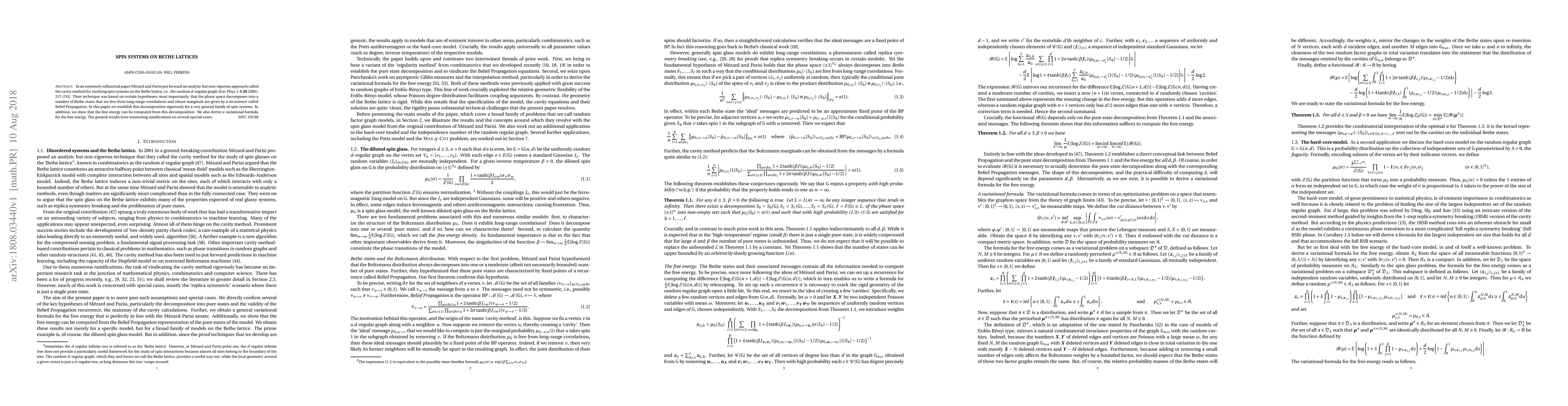 In an extremely influential paper Mezard and Parisi put forward an analytic but non-rigorous approach called the cavity method for studying spin systems on the Bethe lattice, i.e., the random $d$-regular graph [Eur. Phys. J. B 20 (2001) 217--233]. Their technique was based on certain hypotheses; most importantly, that the phase space decomposes into a number of Bethe states that are free from long-range correlations and whose marginals are given by a recurrence called Belief Propagation. In this paper we establish this decomposition rigorously for a very general family of spin systems. In addition, we show that the free energy can be computed from this decomposition. We also derive a variational formula for the free energy. The general results have interesting ramifications on several special cases.