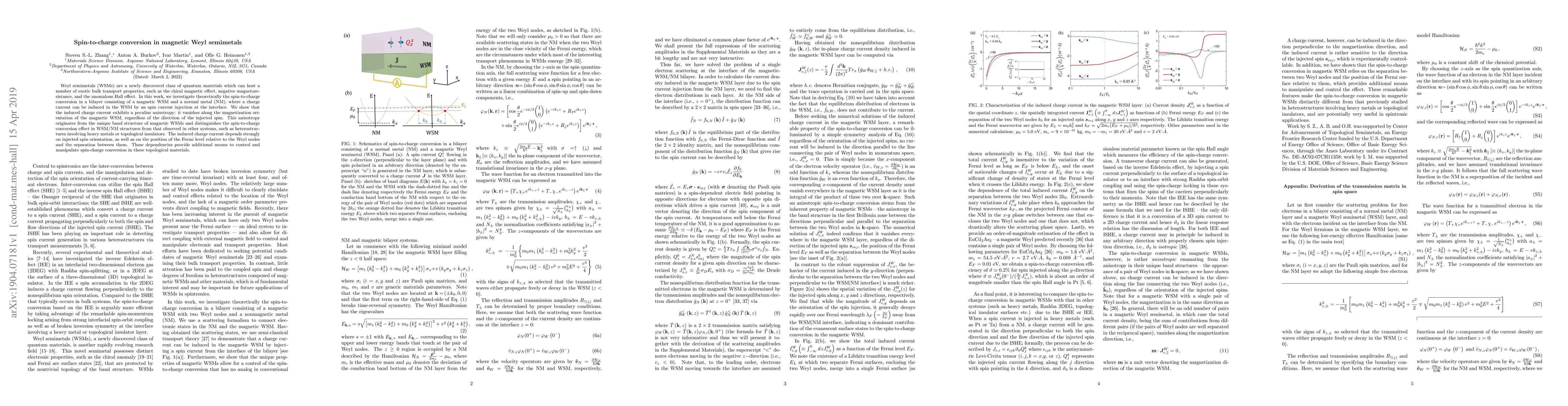 Theoretical investigation using a minimal model Hamiltonian for a magnetic Weyl semimetal layer and a normal metal layer, analyzing spin-to-charge conversion at their interface.
