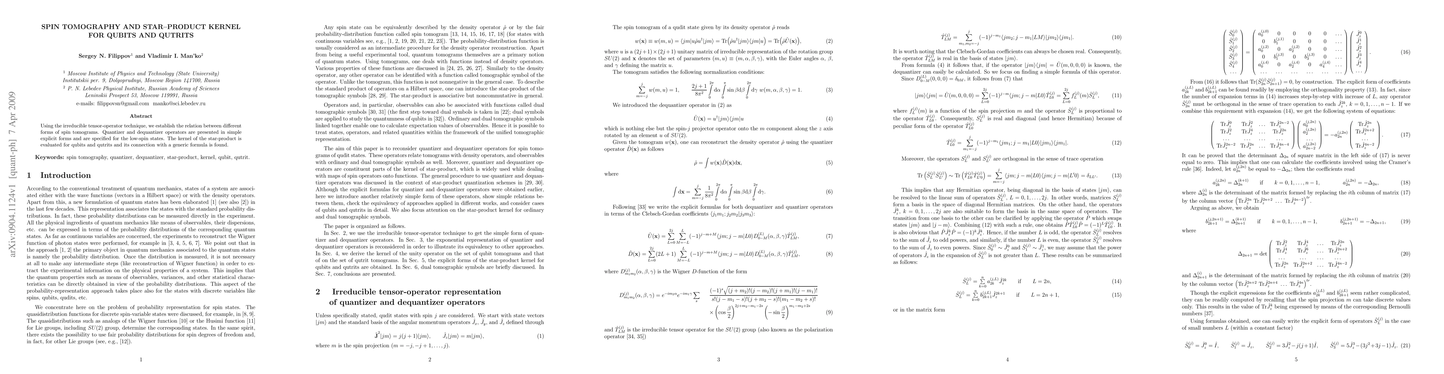 This paper establishes the relationship between various spin tomograms using the irreducible tensor-operator technique and presents explicit quantizer and dequantizer operators for low-spin states. It also evaluates the star-product kernel for qubits and qutrits and finds its connection to a general formula.