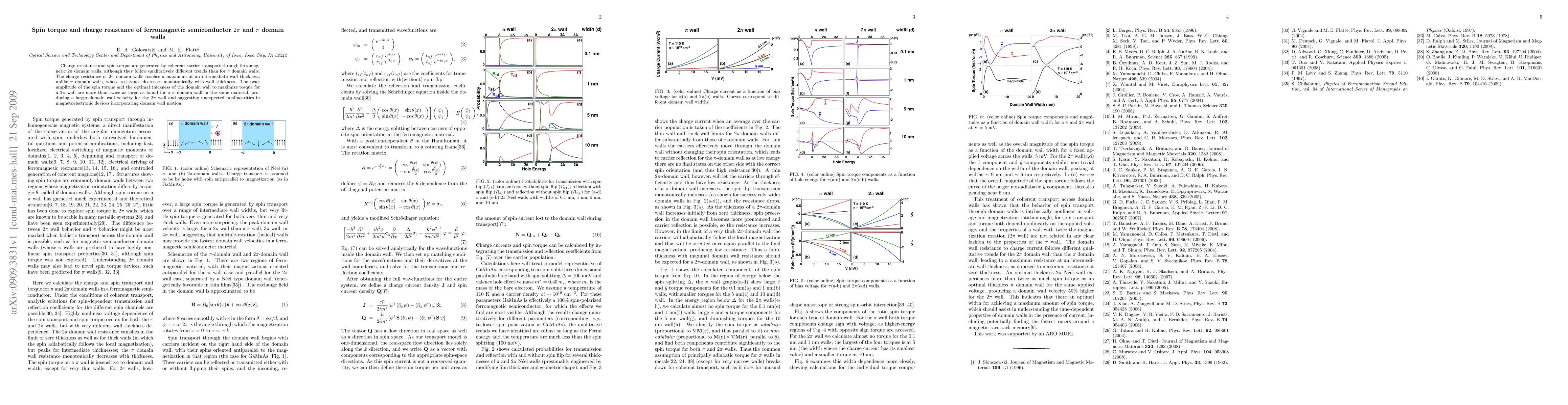 This paper investigates the charge resistance and spin torque generated by coherent carrier transport through ferromagnetic semiconductor domain walls, finding that 360-degree domain walls exhibit maximum charge resistance at an intermediate thickness and double the peak spin torque and optimal thickness of 180-degree domain walls, suggesting significant nonlinearities in magnetoelectronic devices.