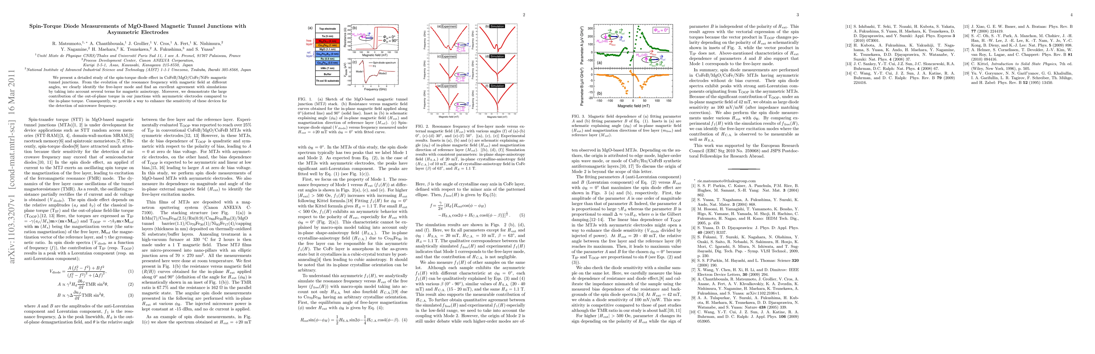 This study investigates the spin-torque diode effect in asymmetric CoFeB/MgO/CoFe/NiFe magnetic tunnel junctions, identifying the free-layer mode and demonstrating a significant out-of-plane torque contribution, which enhances device sensitivity for microwave frequency detection.
