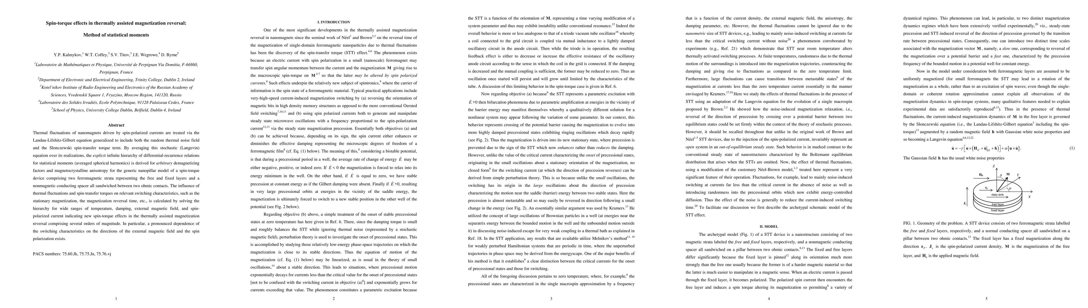 This paper investigates spin-torque effects in thermally assisted magnetization reversal using statistical moments. It derives a hierarchy of differential-recurrence relations for averaged spherical harmonics to analyze the influence of thermal fluctuations and spin-transfer torques on switching characteristics, revealing significant dependencies on external magnetic field and spin polarization directions.