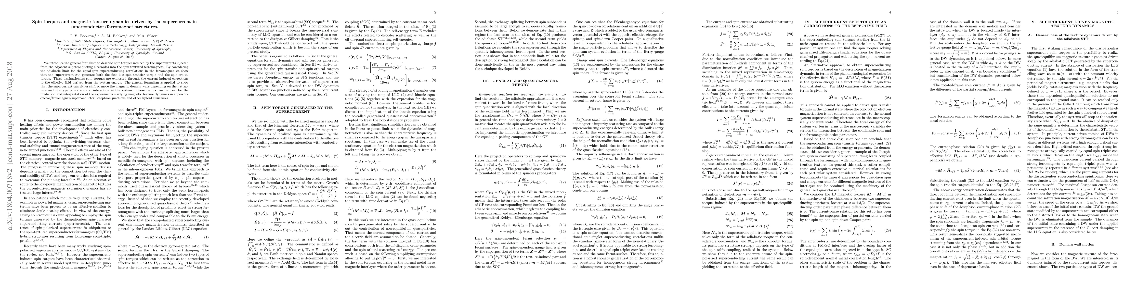 We introduce the general formalism to describe spin torques induced by the supercurrents injected from the adjacent superconducting electrodes into the spin-textured ferromagnets. By considering the adiabatic limit for the equal-spin superconducting correlations in the ferromagnet we show that the supercurrent can generate both the field-like spin transfer torque and the spin-orbital torque. These dissipationless spin torques are expressed through the current-induced corrections to the effective field derived from the system energy. The general formalism is applied to show that the supercurrent can either shift or move the magnetic domain walls depending on their structure and the type of spin-orbital interaction in the system. These results can be used for the prediction and interpretation of the experiments studying magnetic texture dynamics in superconductor/ferromagnet/superconductor Josephson junctions and other hybrid structures.